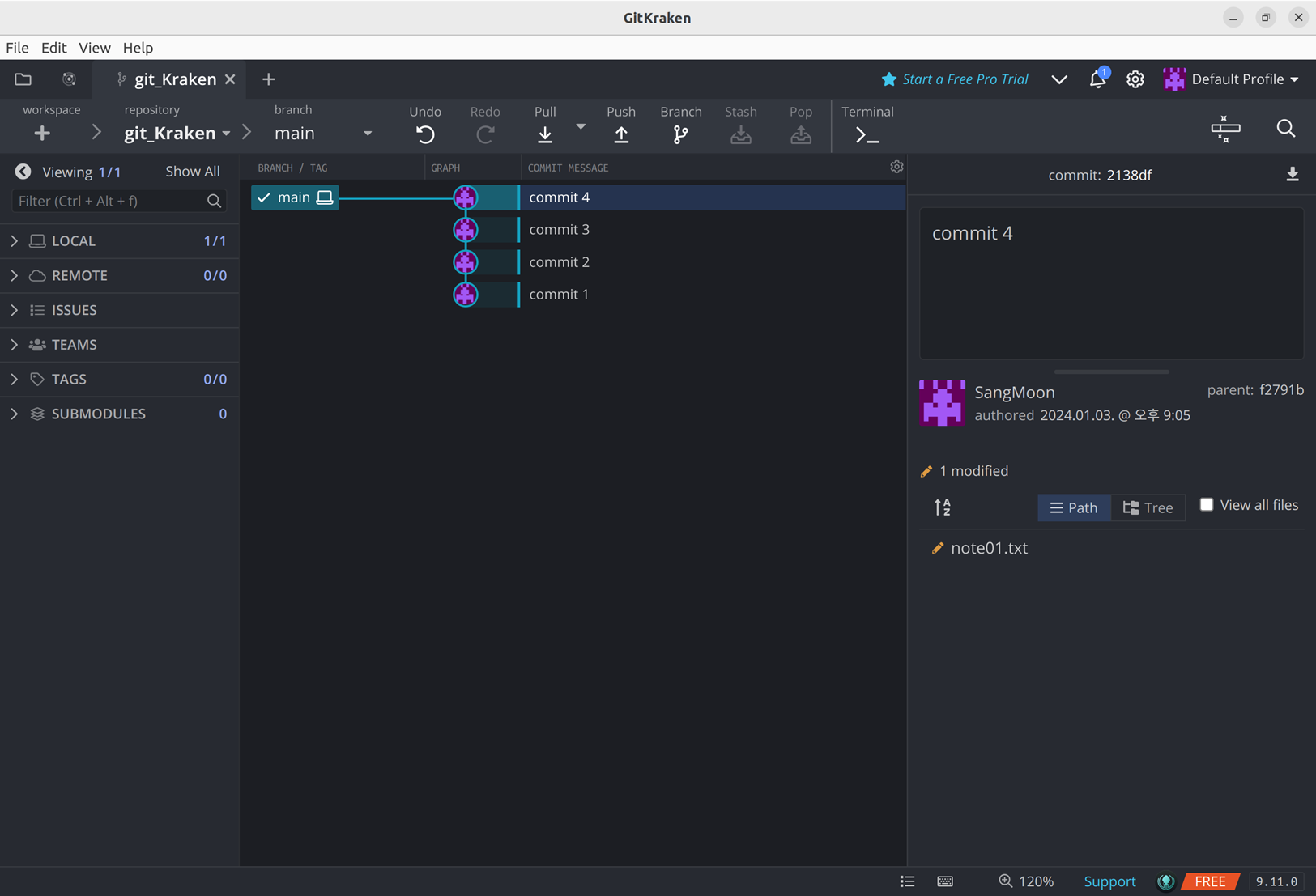 Workspace 폴더 경로의 .git 폴더를 삭제하고, 계속 반복 응용 연습한다.
