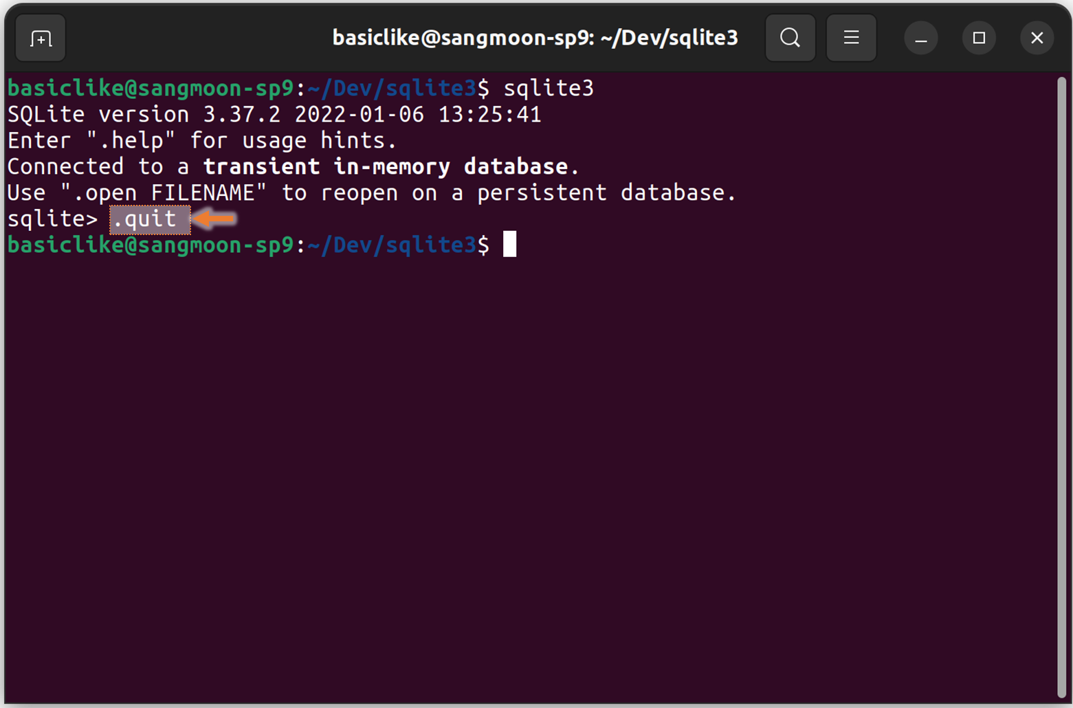.quit .exit 를 입력하면 SQLite3 를 종료할 수 있습니다.