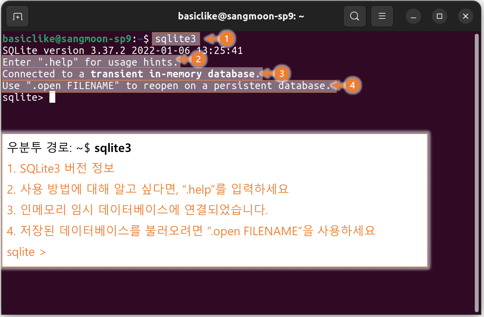 - SQLite3 Tool 실행, 종료, 명령 프롬프트(입력, 도움말)