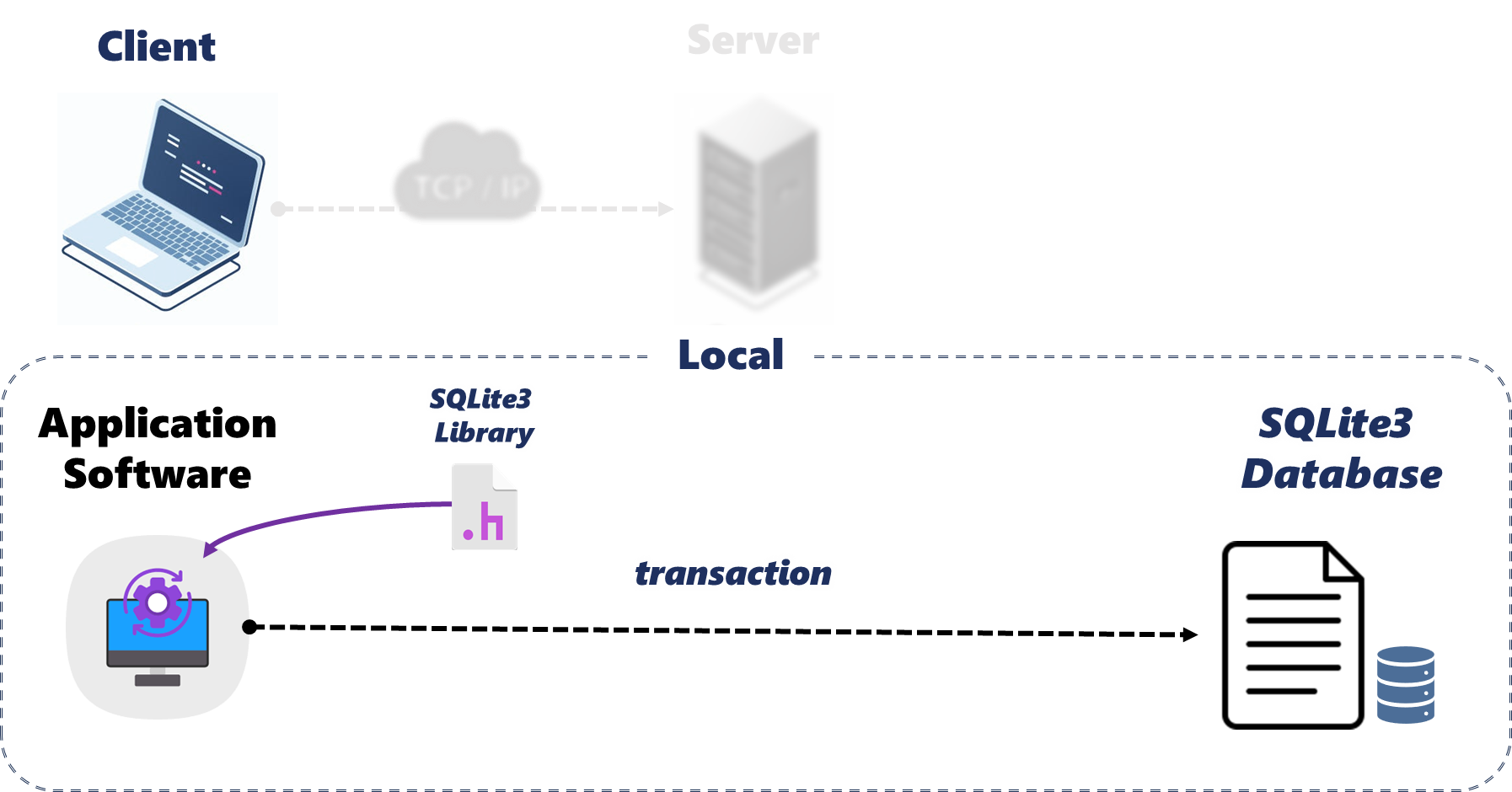 SQLite 는 별도의 서버 소프트웨어 프로세스(DBMS)를 가지고 있지 않고, 일반 파일을 직접 읽고 씁니다.