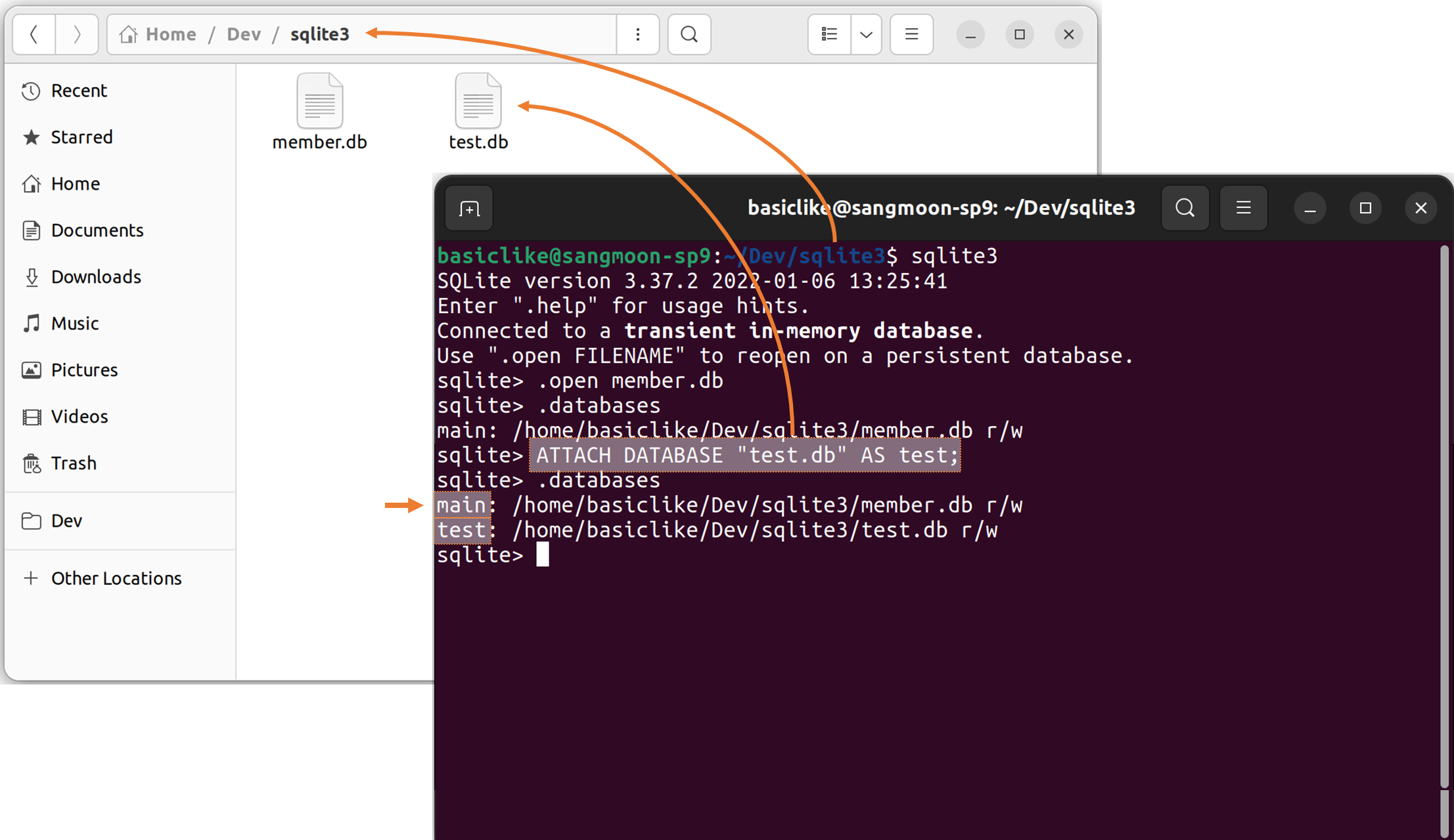 ATTACH DATABASE .db 명령어를 사용해 새 DB 파일 생성과 동시에 연결