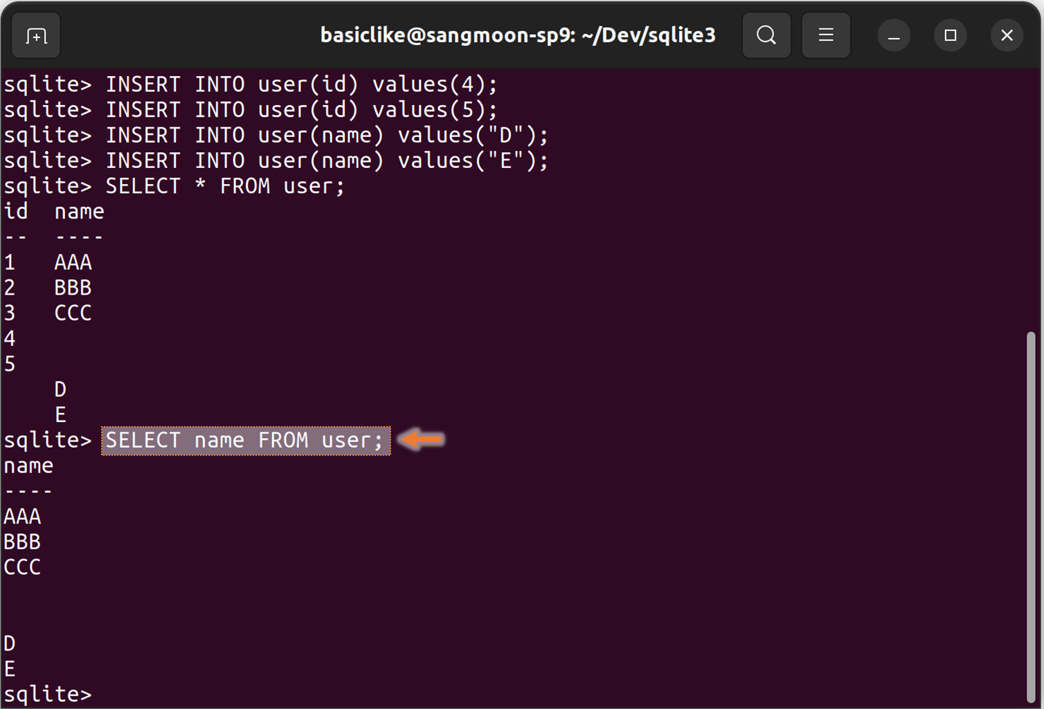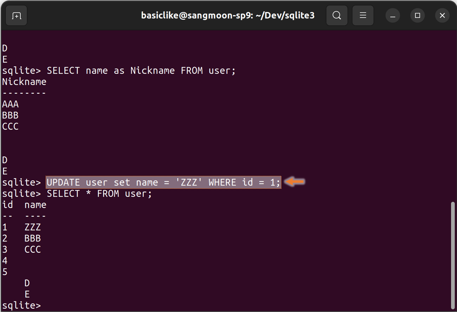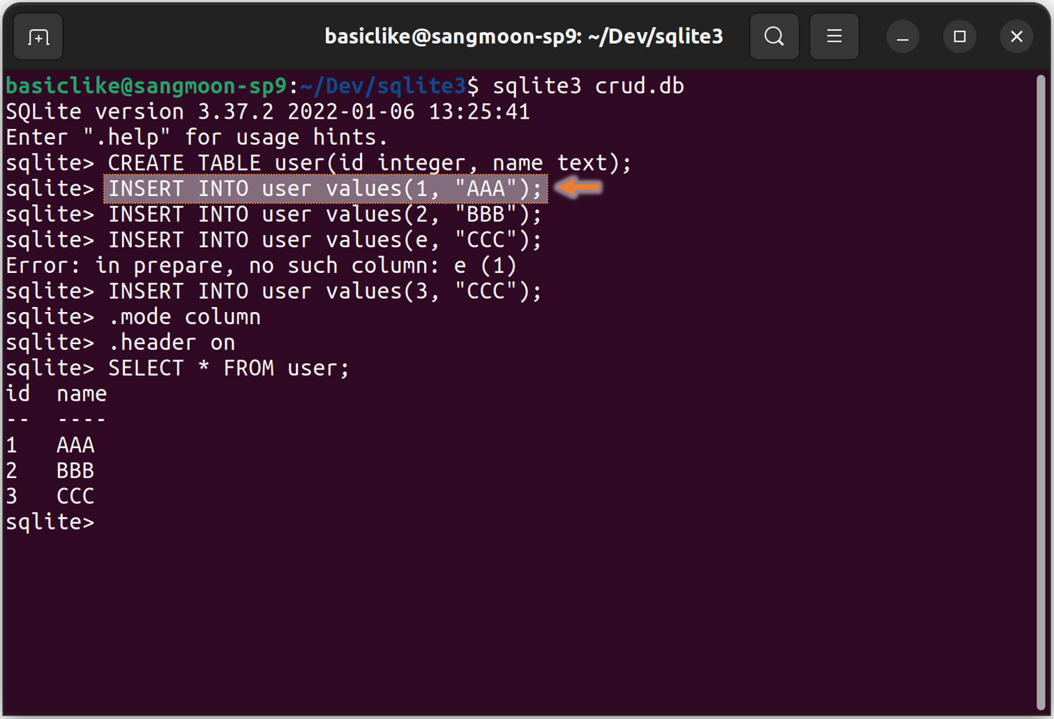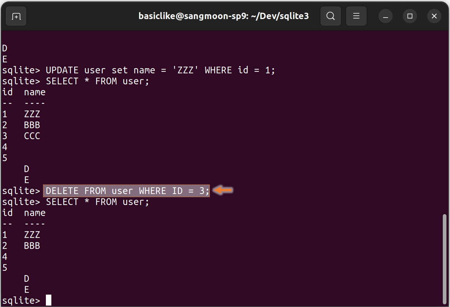 - SQLite3 DB Table Values 생성, 조회, 갱신, 삭제