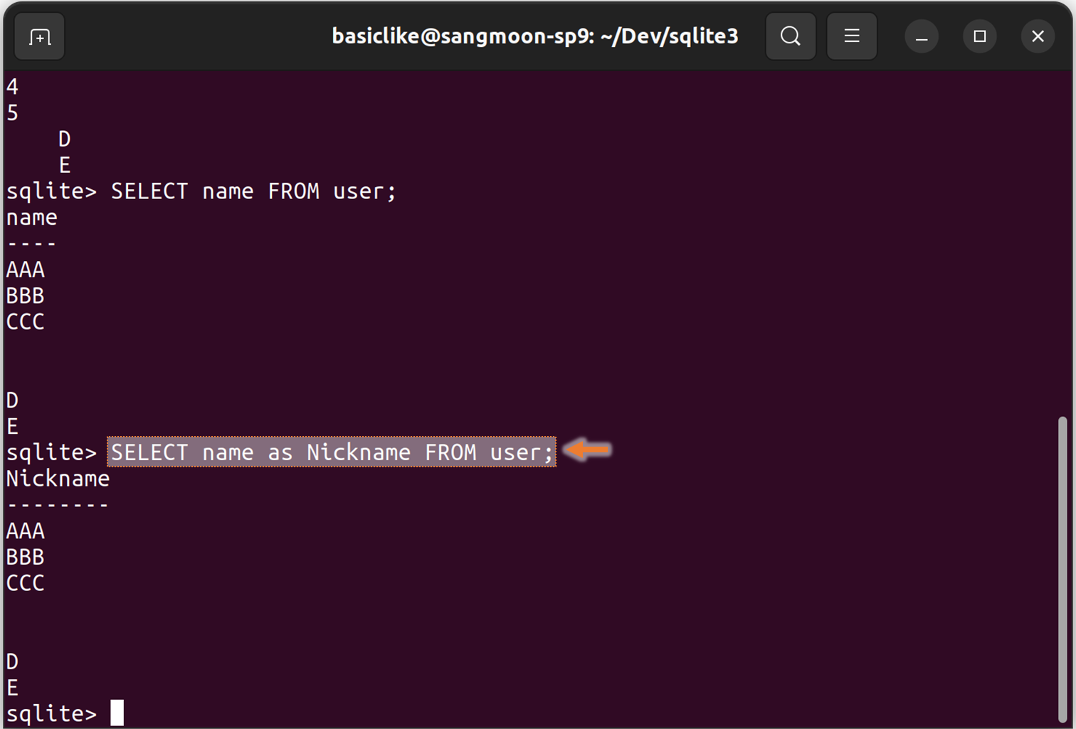 5.3 일반적으로 CREATE TABLE 은 main 으로 연결된 DB 파일에 테이블을 생성하기 때문에, 연결된 DB 파일이 여러개라면, 테이블 이름을 지정할 때 보다 명시적으로 아래와 같이 지정한다.