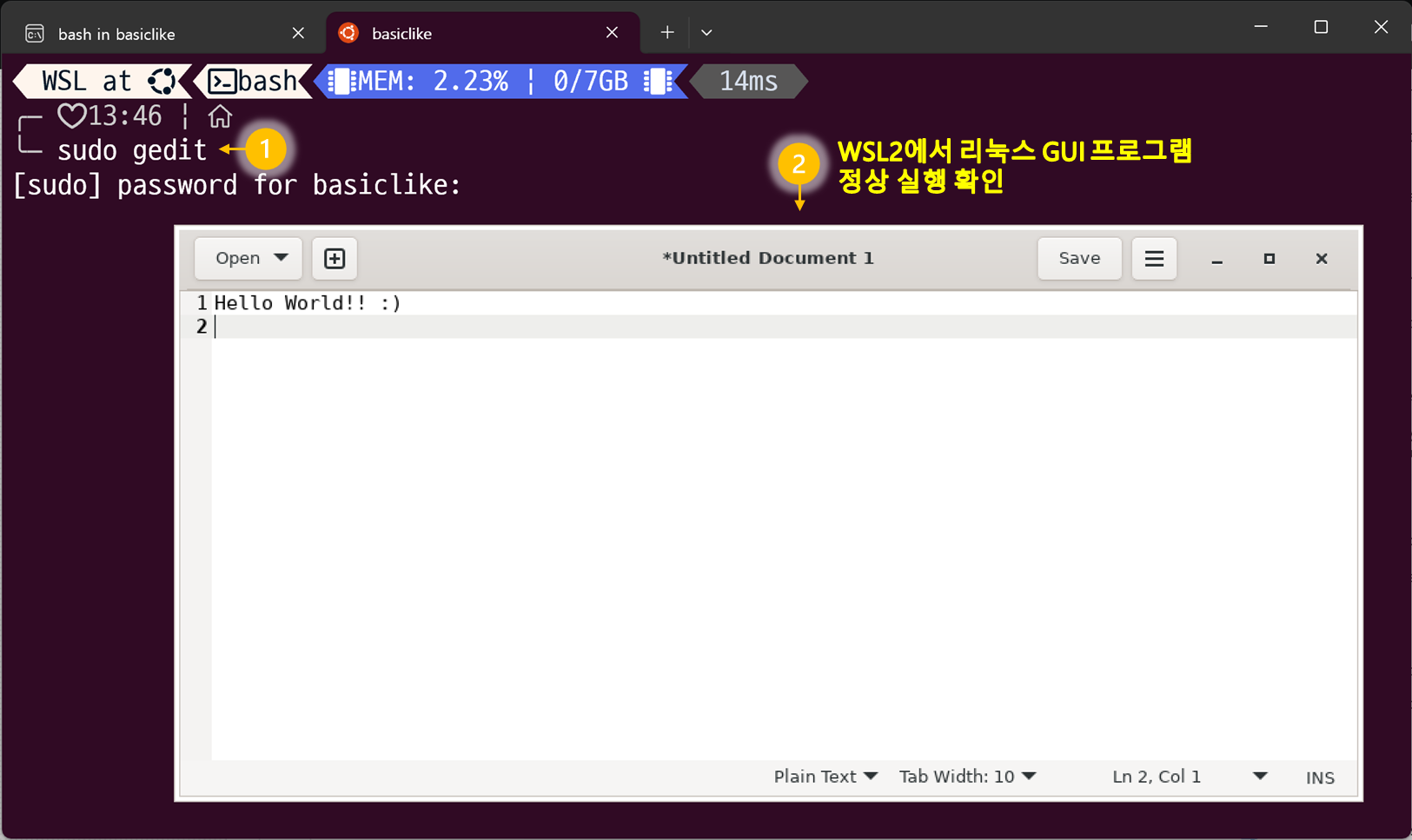 윈도우 11 의 경우, WSL2에 WSLg 방식으로