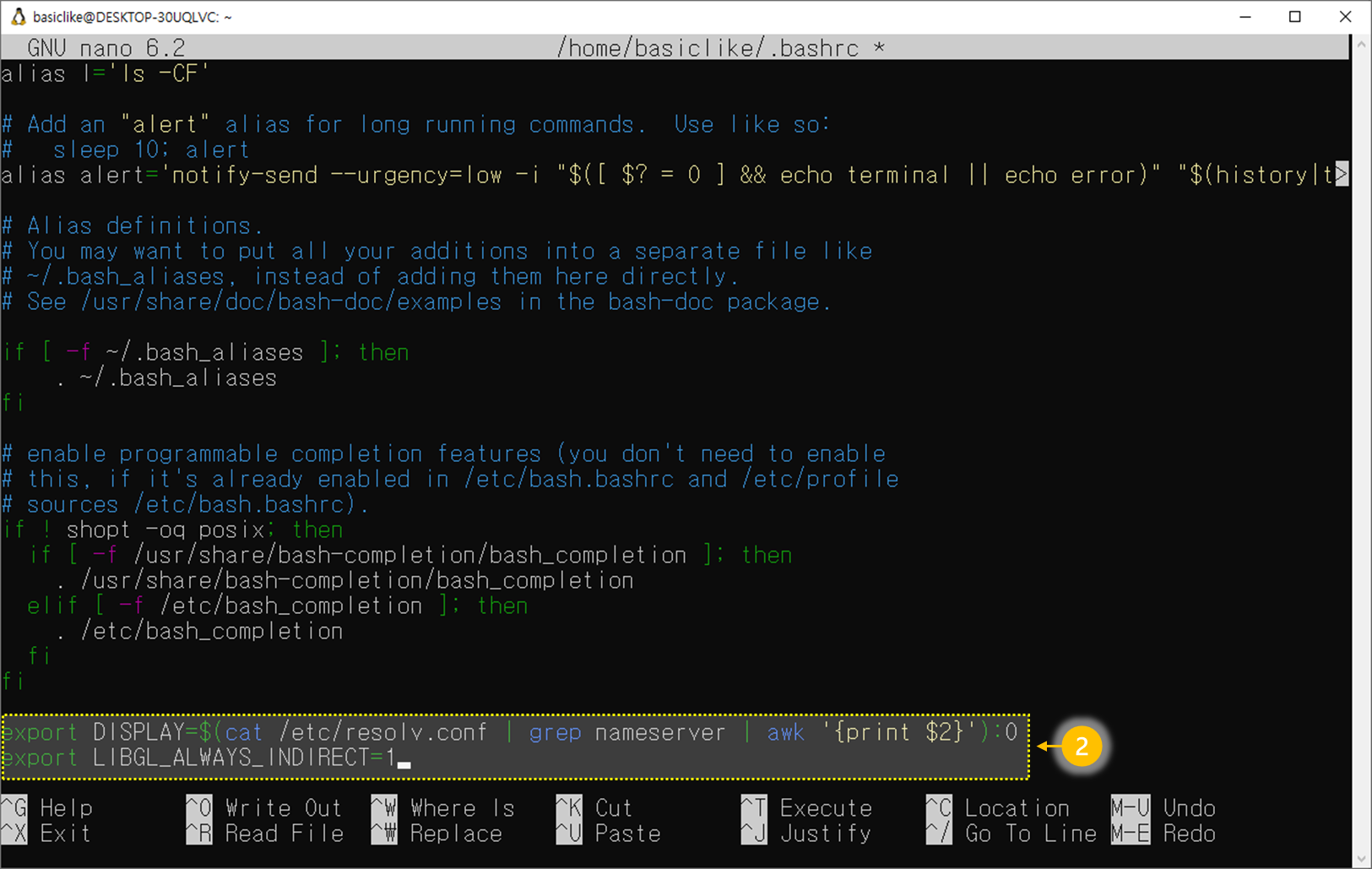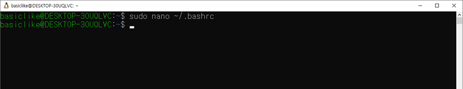 ⏩ bashrc 스크립트 nano 에디터로 열기