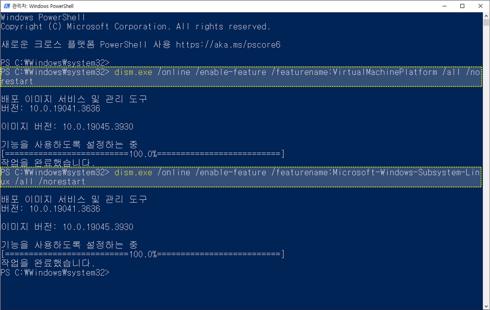 $ dism.exe /online /enable-feature /featurename:VirtualMachinePlatform /all /norestart