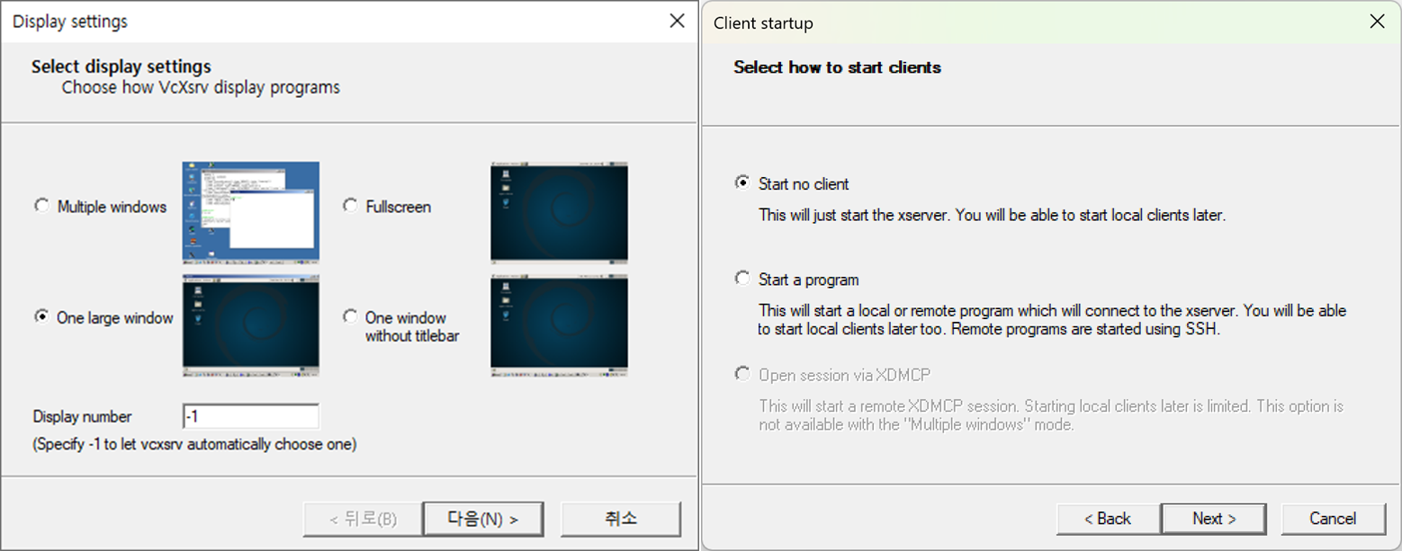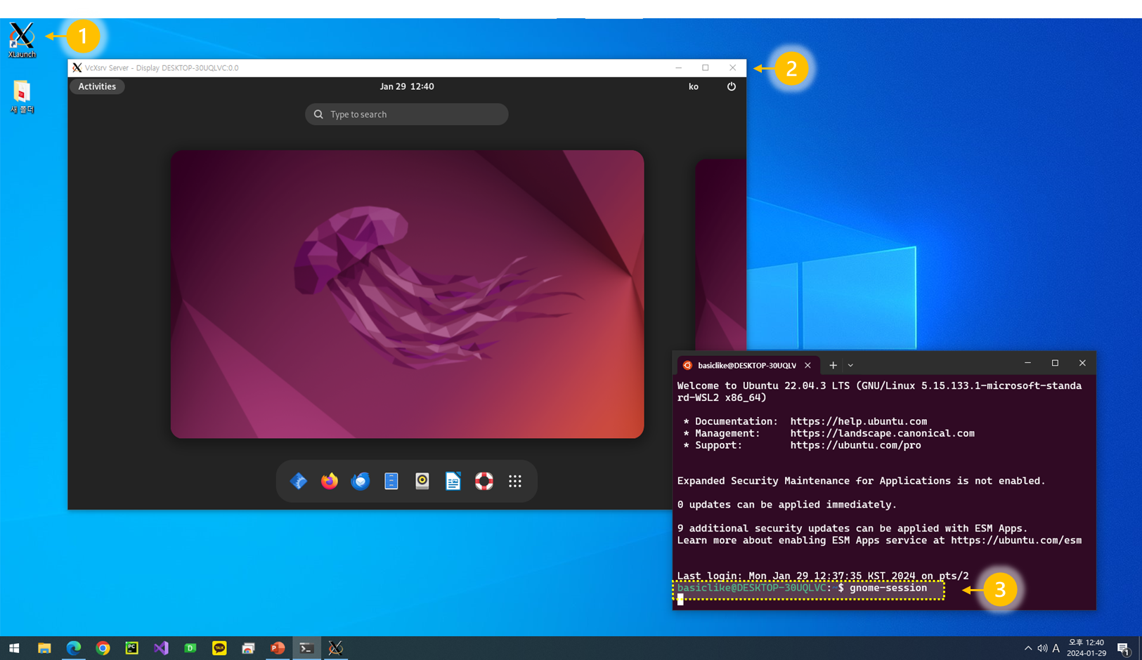 윈도우 10 의 경우, WSL2에 ubuntu-desktop을 Windows X Server로 띄우면