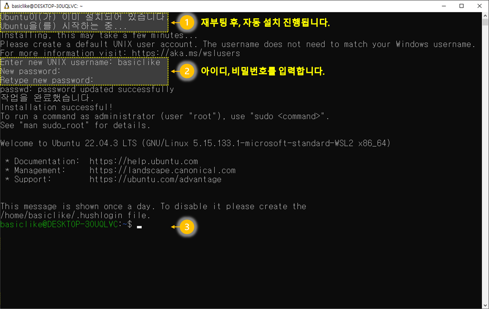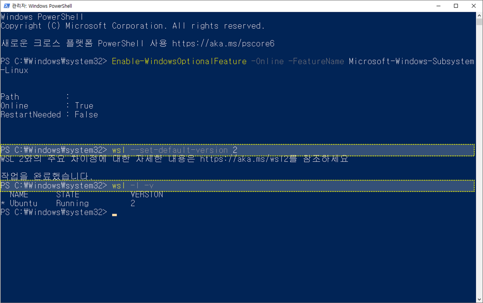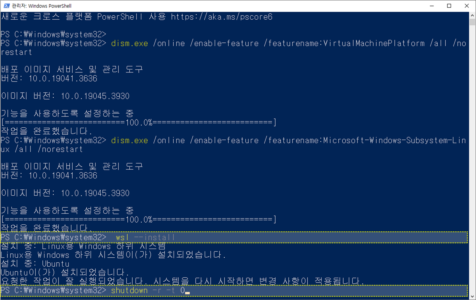✅WSL 설치 & 재부팅 & 우분투 자동 설치