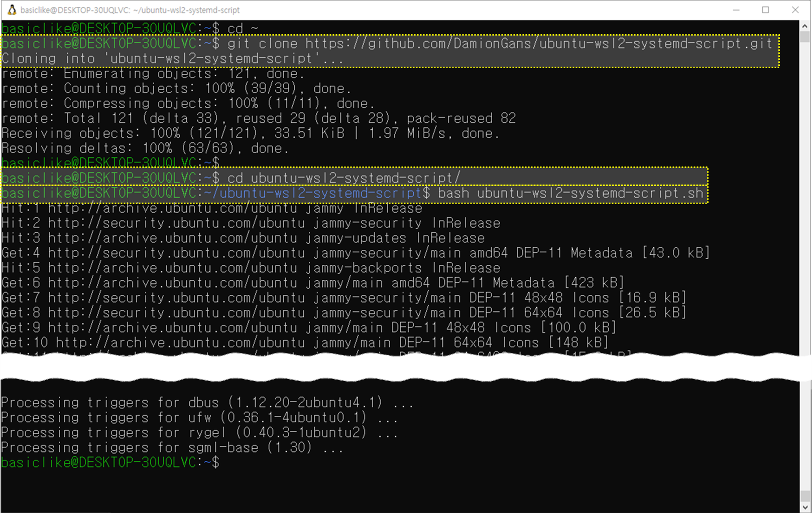 $ git clone https://github.com/DamionGans/ubuntu-wsl2-systemd-script.git