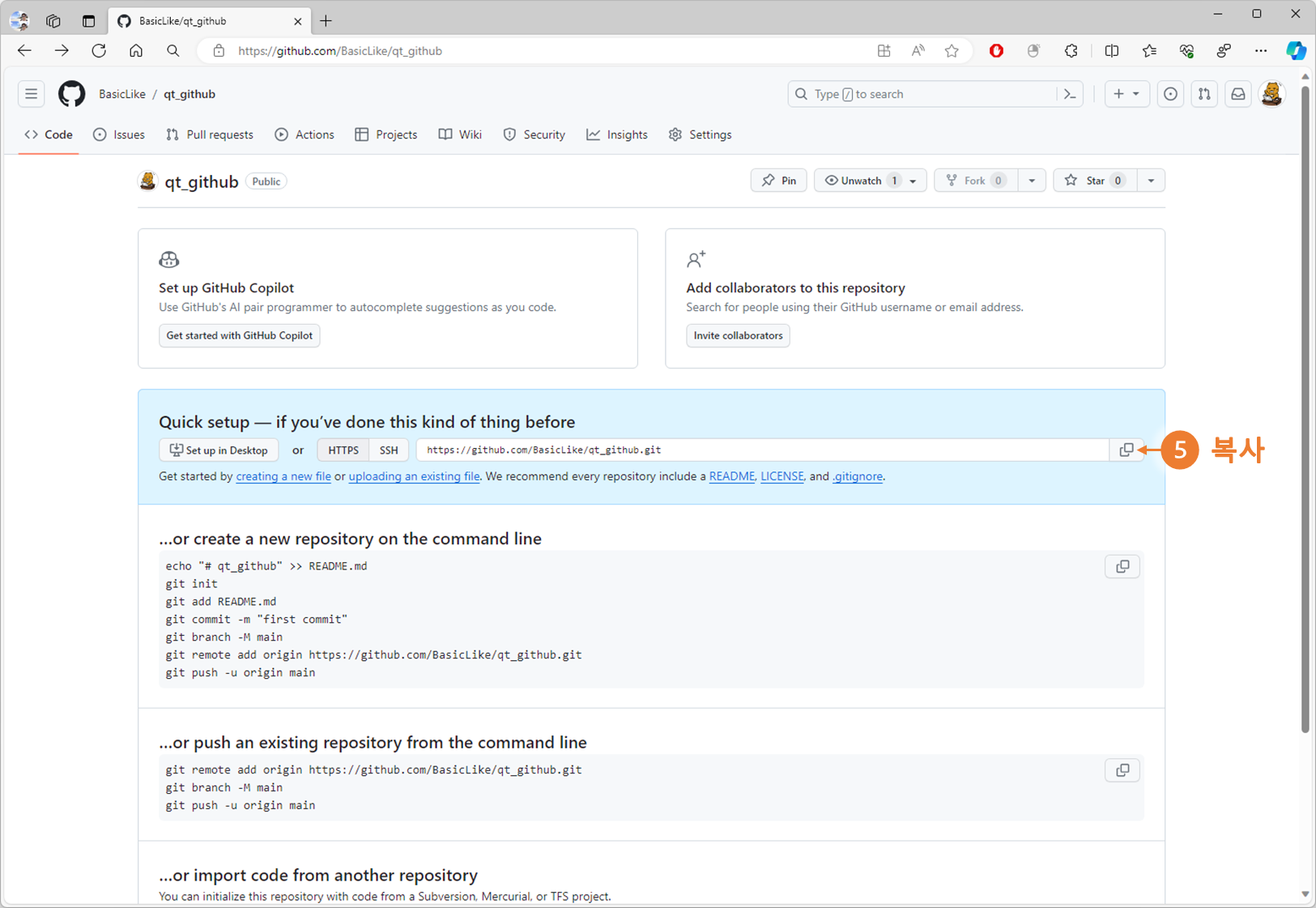 GitHub 원격(Remote) 저장소를 사용하려면, Git 로컬(Local) 저장소 작업을 먼저 진행해야 합니다.