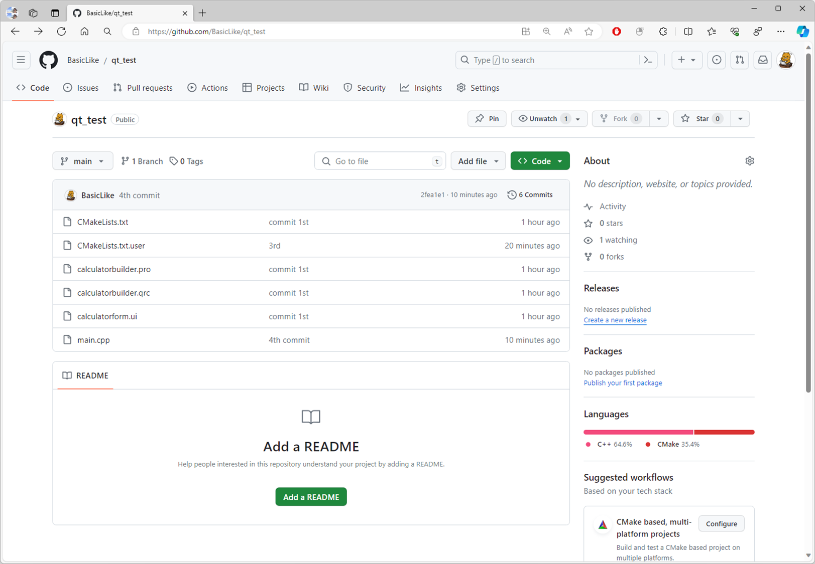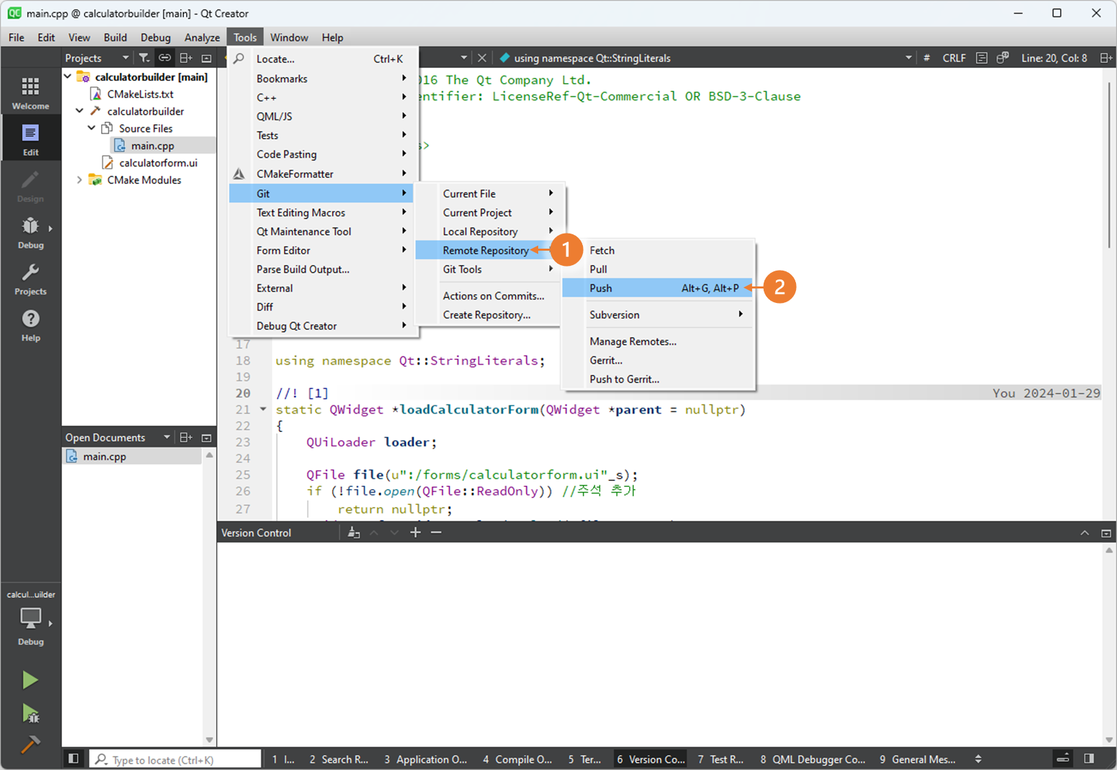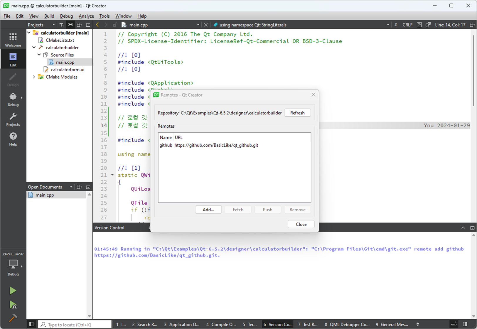 Qt Creator에서 Git 저장 후, GitHub 업로드 방법만 간단히 요약합니다.