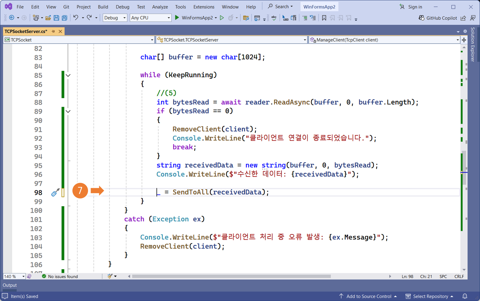 Console.WriteLine($"전송 중 오류 발생: {excp.Message}");