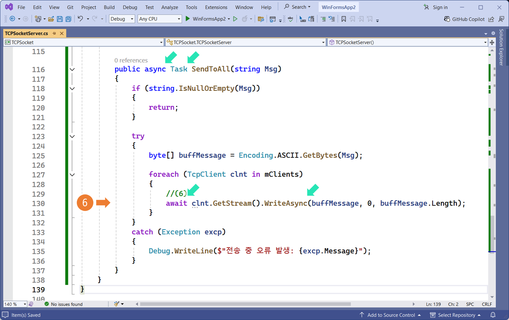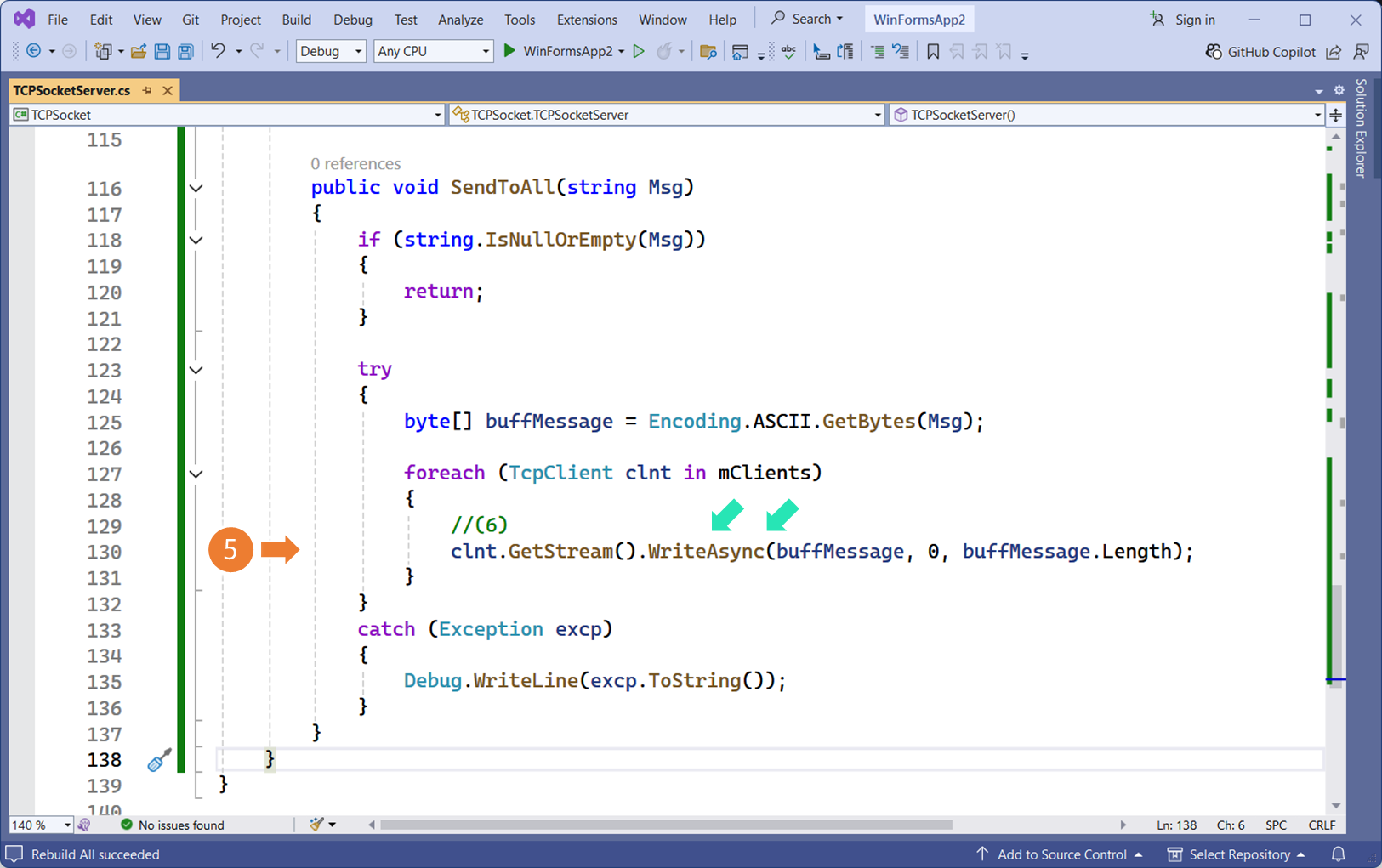 await clnt.GetStream().WriteAsync(buffMessage, 0, buffMessage.Length);