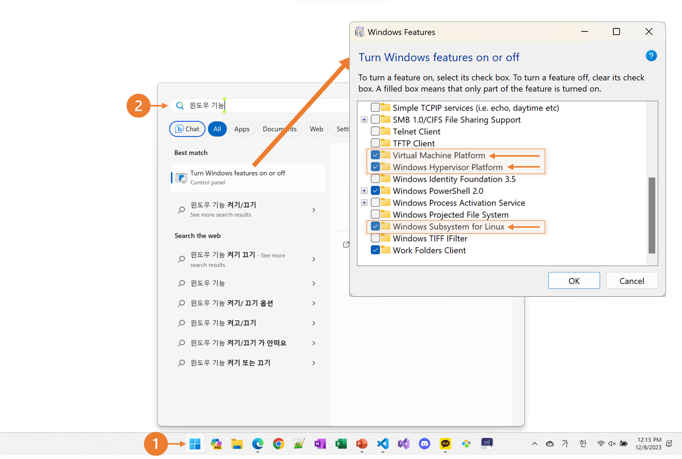 2. "가상 머신 플랫폼" 기능 켜기