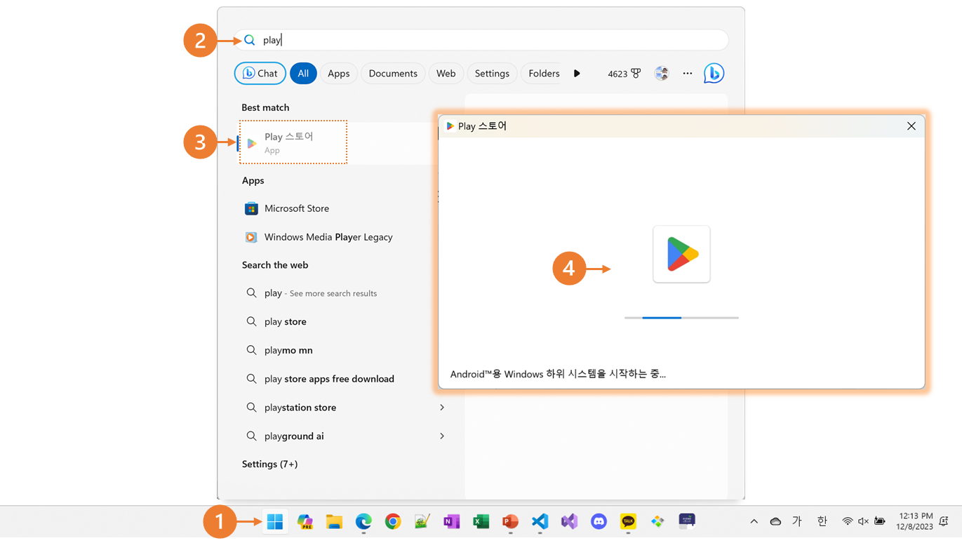 1. 윈도우에서 구글 플레이 스토어 검색 후 실행