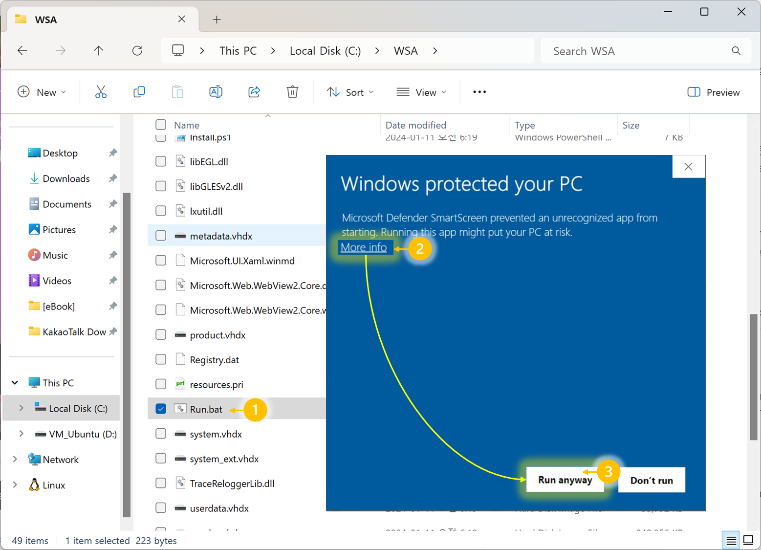 3. Run.bat 파일 실행