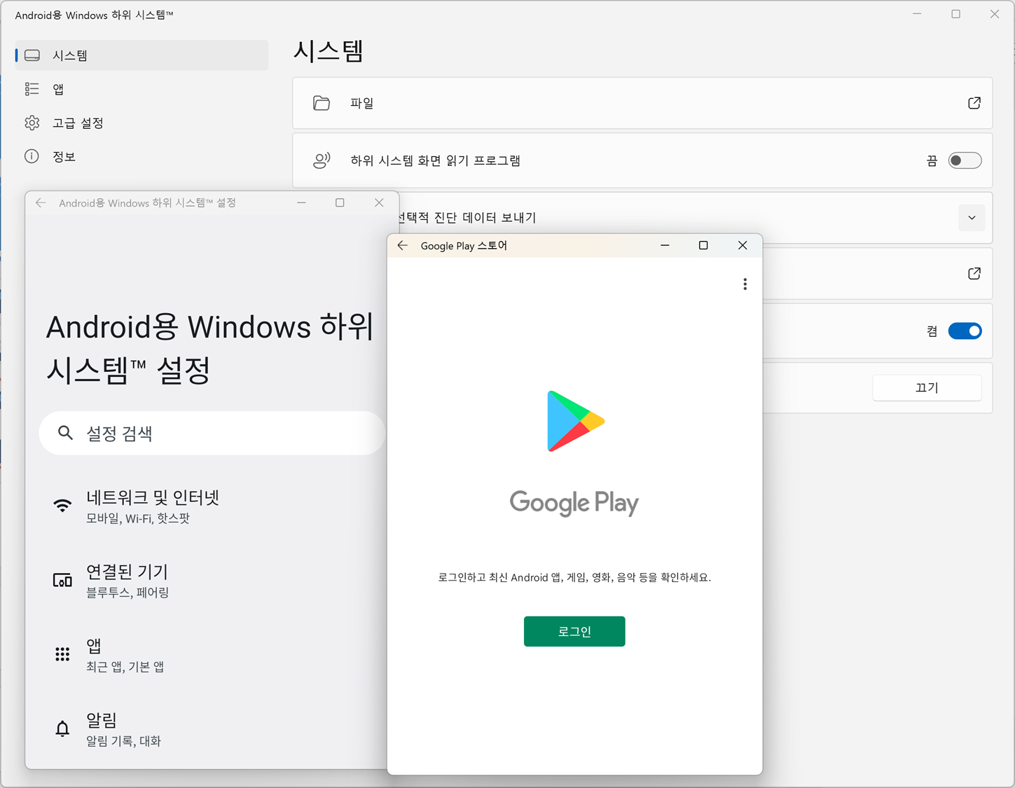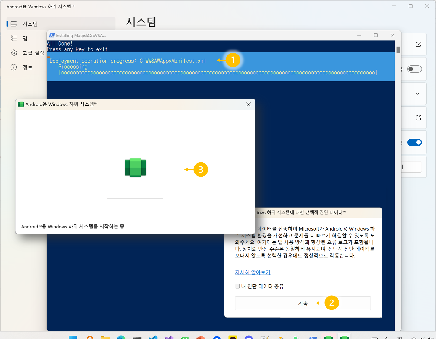 1. Android용 Windows하위 시스템 앱 삭제