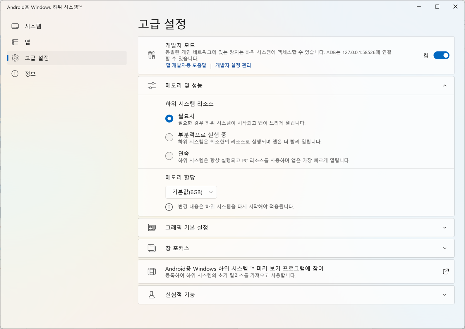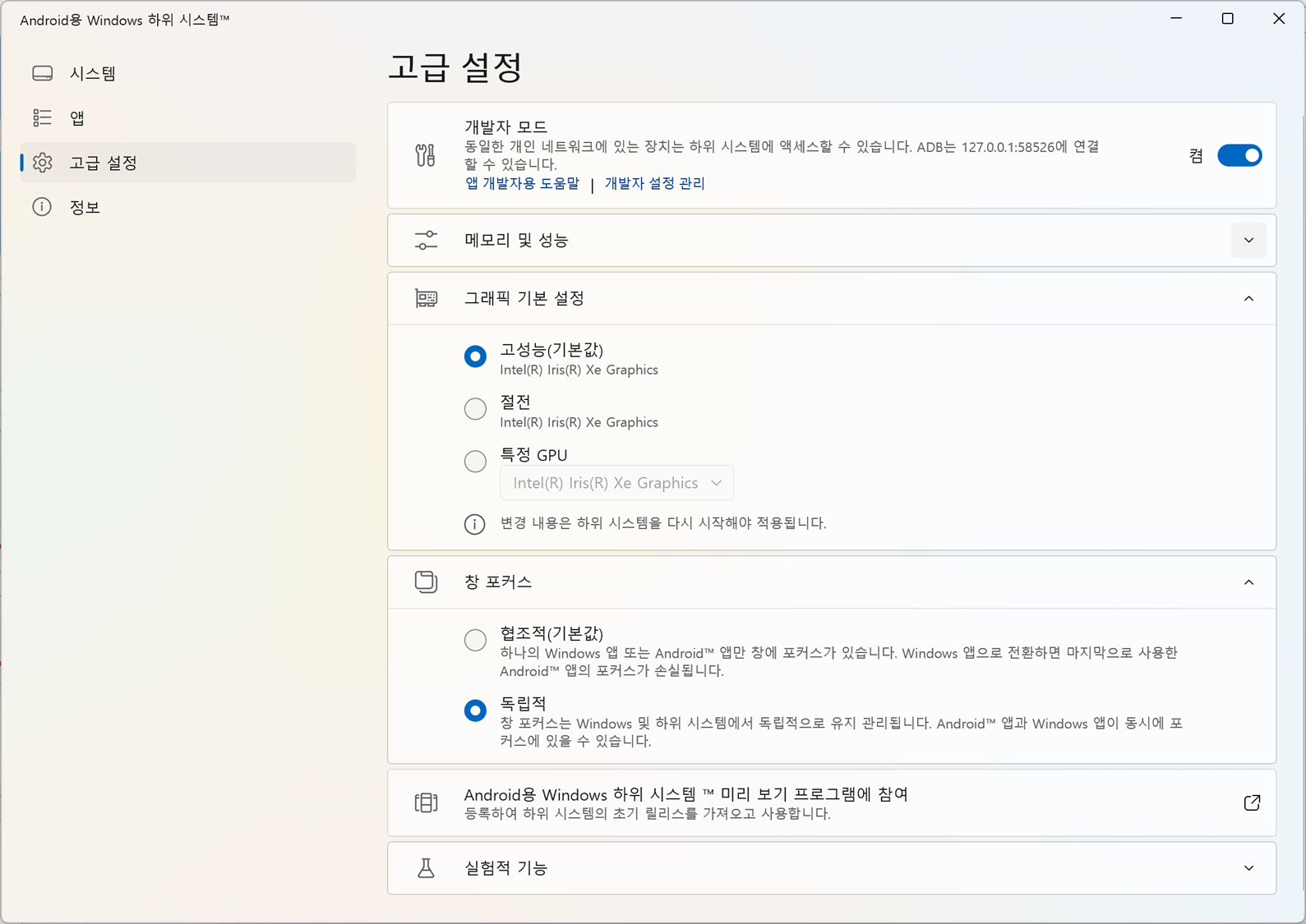 ✅ WSA 설정