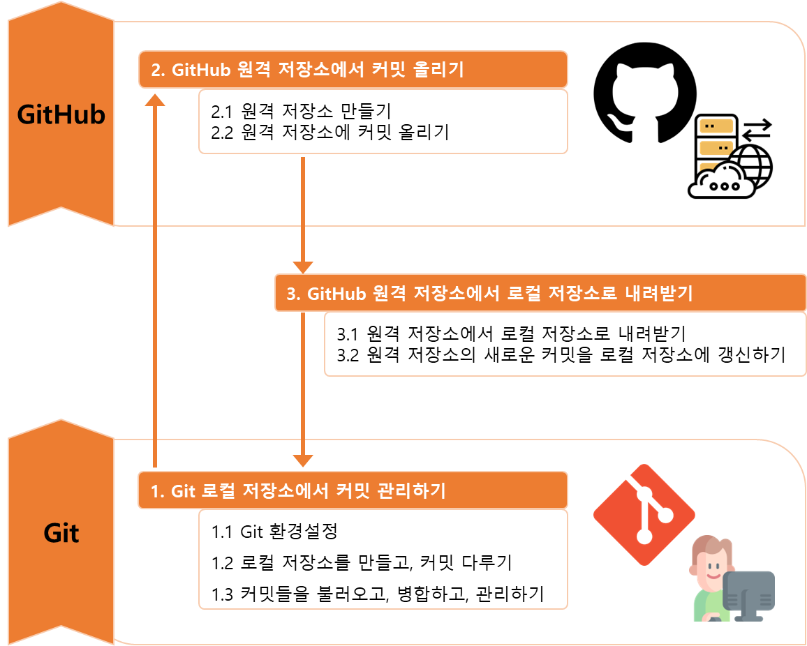 [D] Git 실습 로드맵 & 학습 목표 2024.12.04 16:01 Git/Setup & Tip 1. 실습 로드맵 더보기 2. 학습 목표 더보기 주요 기능 중심의 학습 우선 목표 Git 저장 & 되돌리기 (Commit / Reset) GitHub 소스코드 공유 (Push / Pull) Git 분기와 병합 (Branch / Merge) GitHub 협업 (Pull Request) 공유하기 게시글 관리 BasicLike 댓글 공유하기 다른 글 댓글 이 글 공유하기 구독하기 구독하기 카카오톡 카카오톡 라인 라인 트위터 트위터 Facebook Facebook 카카오스토리 카카오스토리 밴드 밴드 네이버 블로그 네이버 블로그 Pocket Pocket Evernote Evernote 다른 글 [A] <Deb> Git 설치 [A] <Deb> Git 설치 2025.08.28 [B] 깃 사용자 정보 등록 [B] 깃 사용자 정보 등록 2024.12.04 [A] <Deb> 깃 삭제 [A] <Deb> 깃 삭제 2024.07.30 <WSL> GitHub 환경설정 <WSL> GitHub 환경설정 2024.05.13 다른 글 더 둘러보기