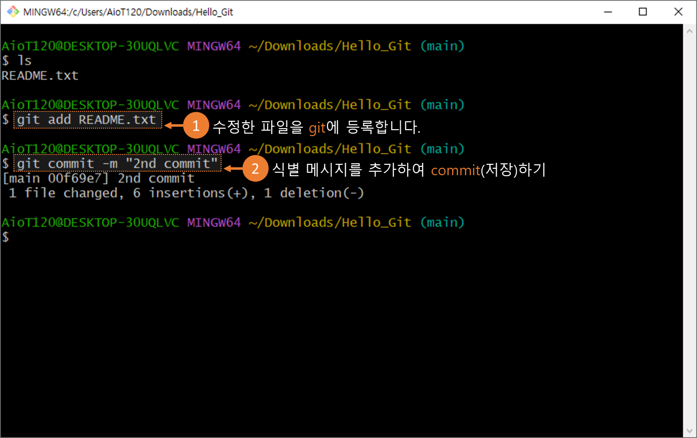 02.3 깃(git)에 의미 있는 변경 작업을 커밋(commit)하고 커밋 식별 메시지(-m "msg")를 추가하기