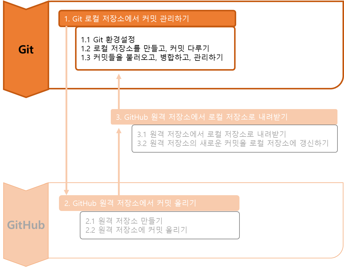 1. 아래 실습 로드맵의 [1. Git 로컬 저장소에서 커밋 관리하기] 파트를 Git과 메모장을 사용해서 연습해 봅시다.