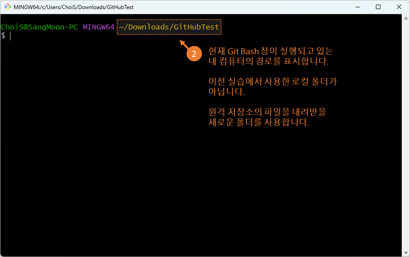 01. 원격 저장소에 등록된 작업물을 내려받을 폴더를 하나 생성합니다.