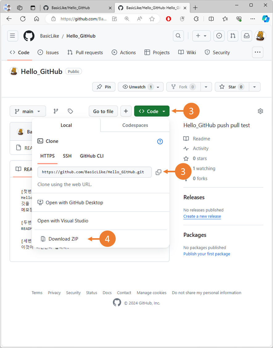 가장 간편한 clone 을 기준으로 GitHub에서 내려받기를 이해해봅시다.