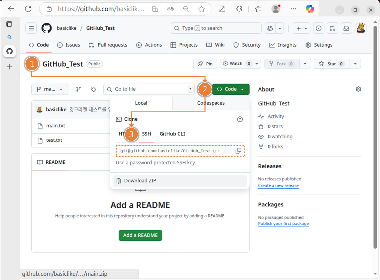 방법2) SSH로 클론(협업/빈번한 푸시에 유리)