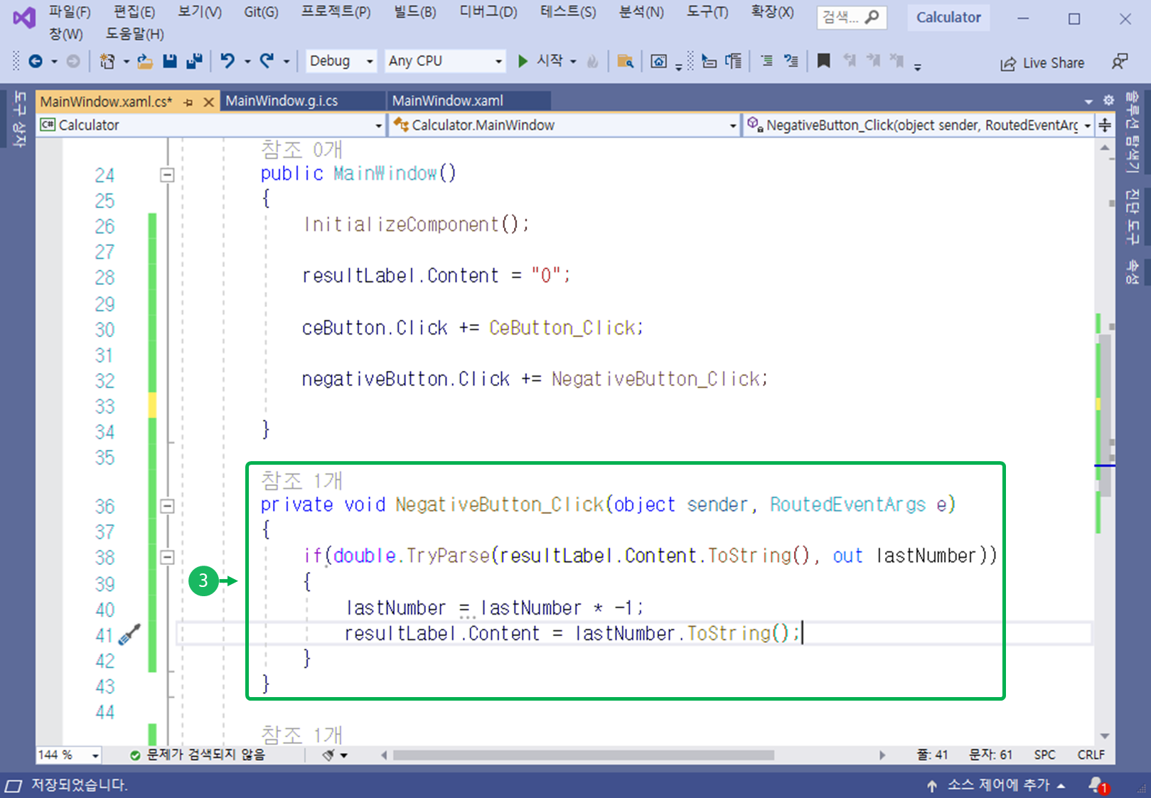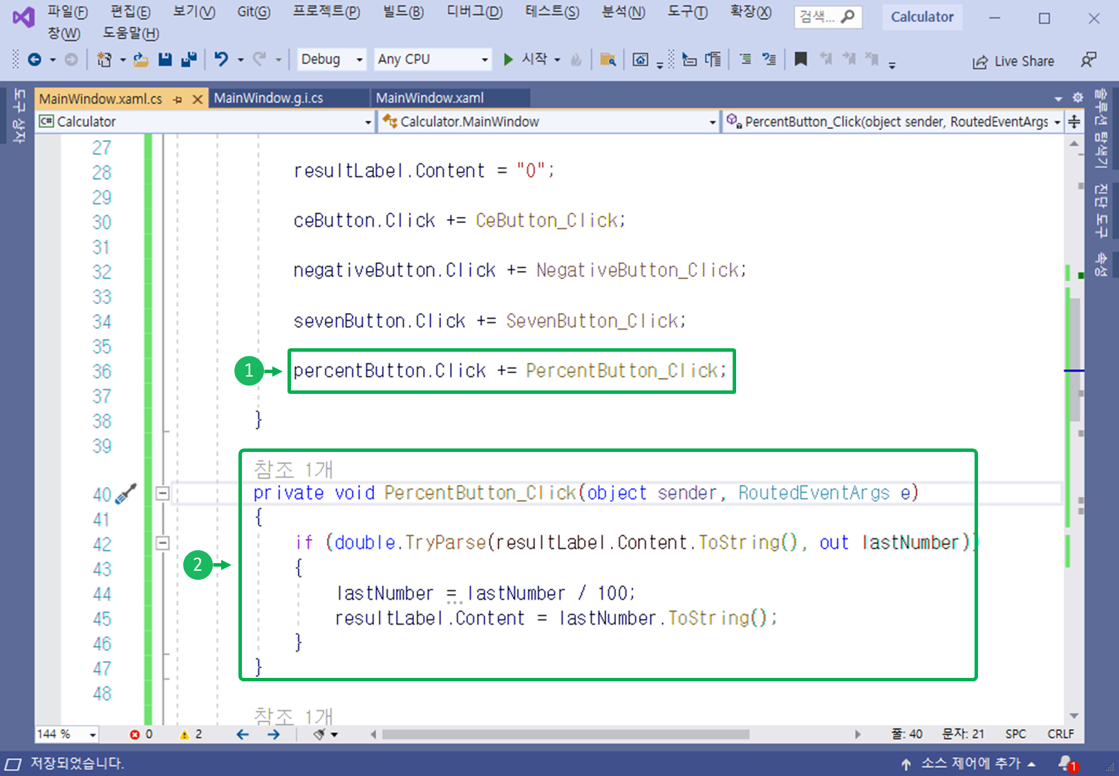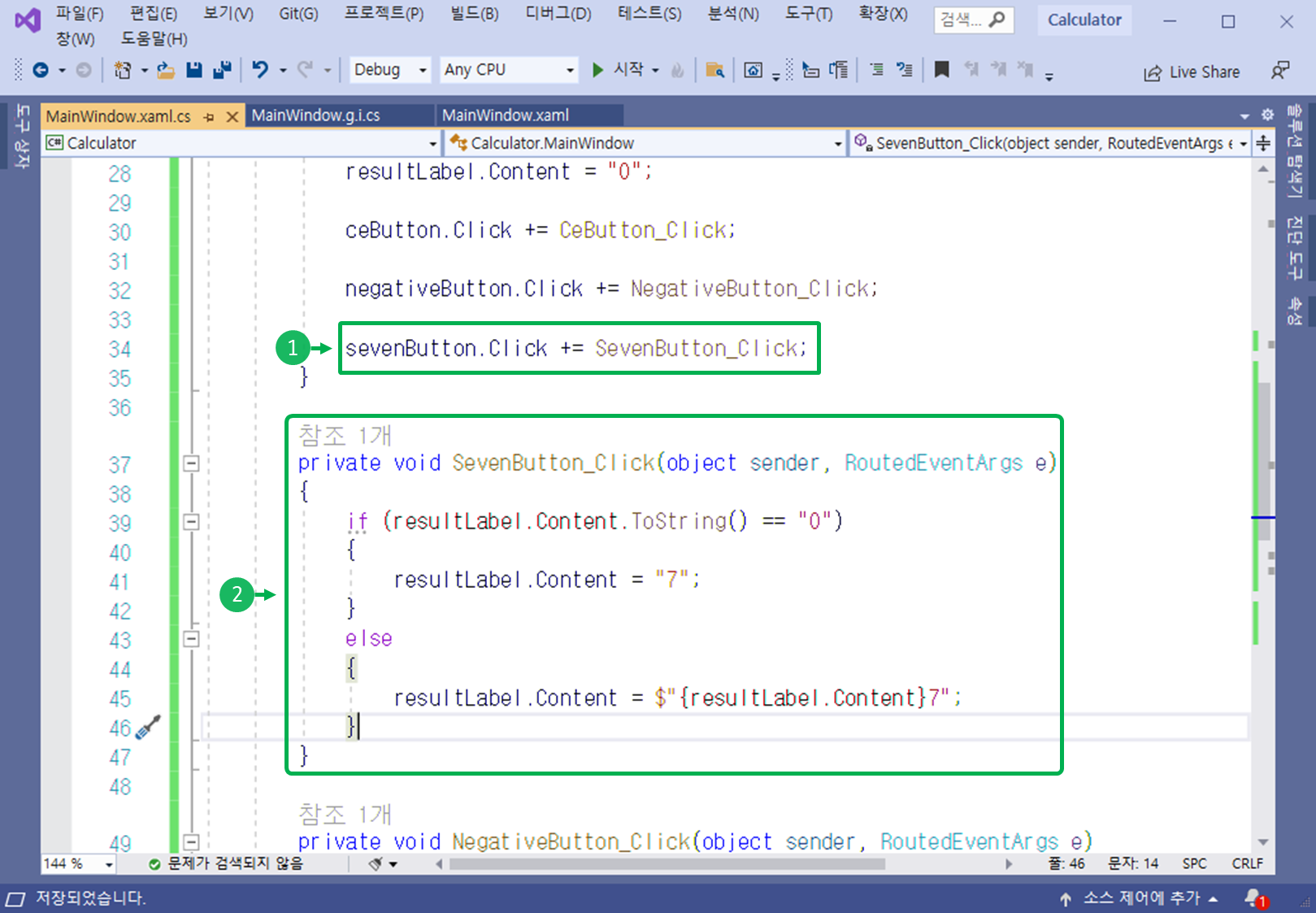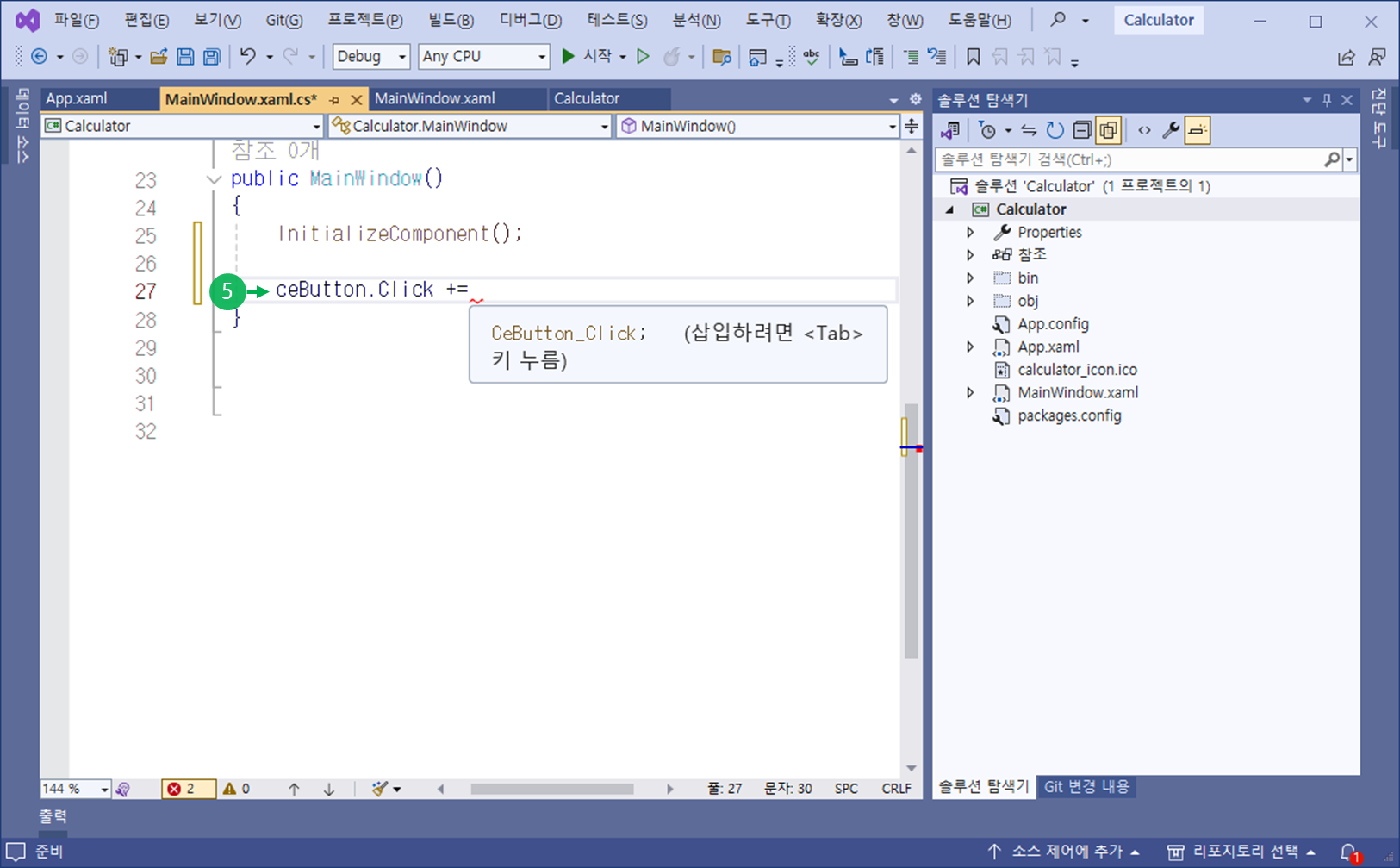 MainWindow.xaml 의 Code Behind(C# 소스 코드)로 이동합니다.