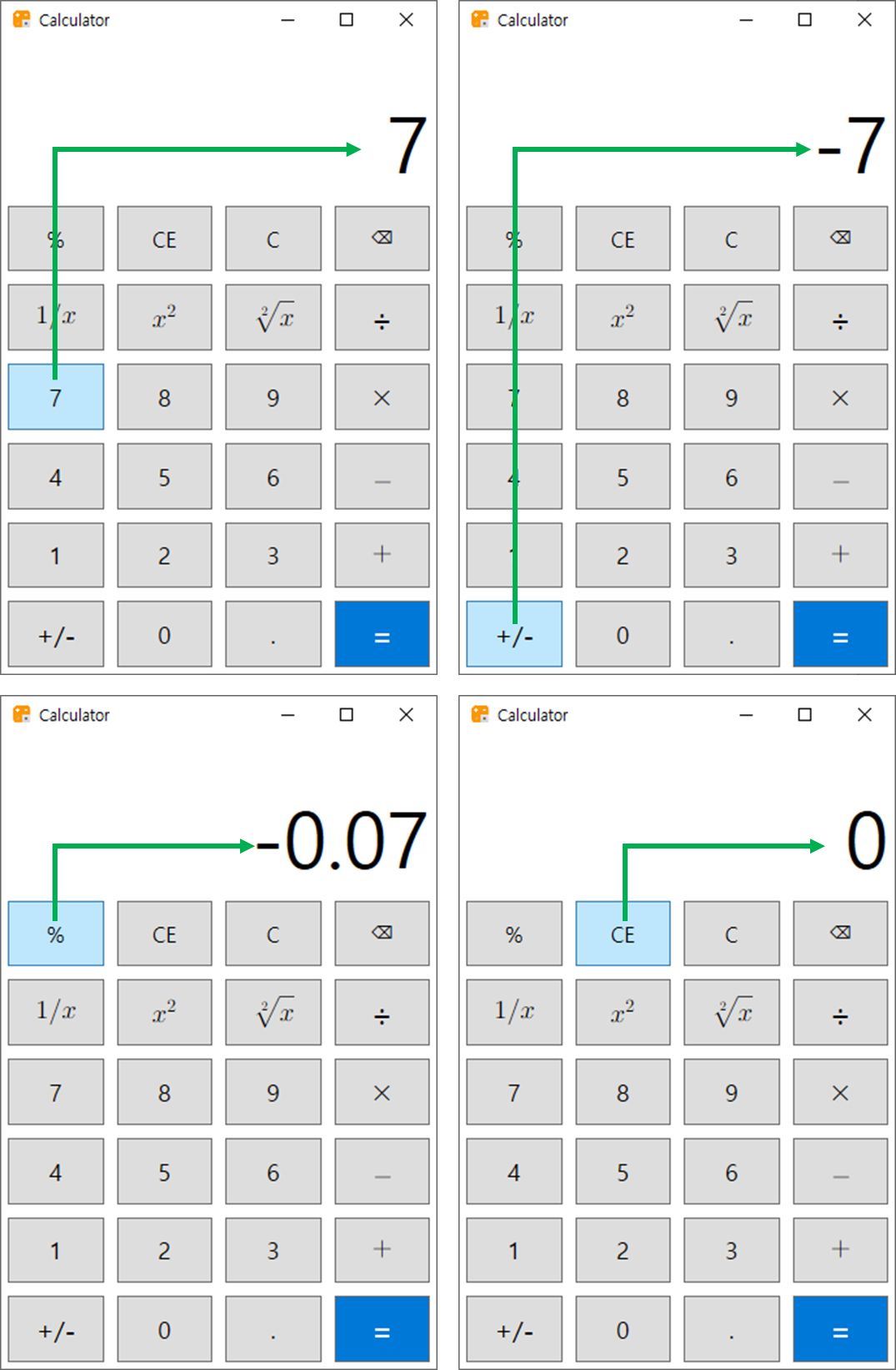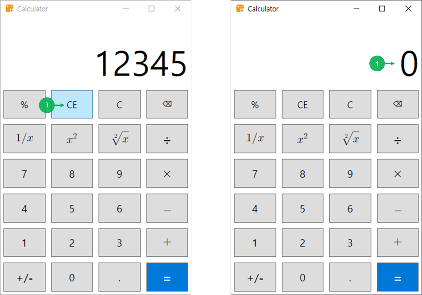 CE(Clear Entry)의 의미는 마지막 입력 삭제입니다.