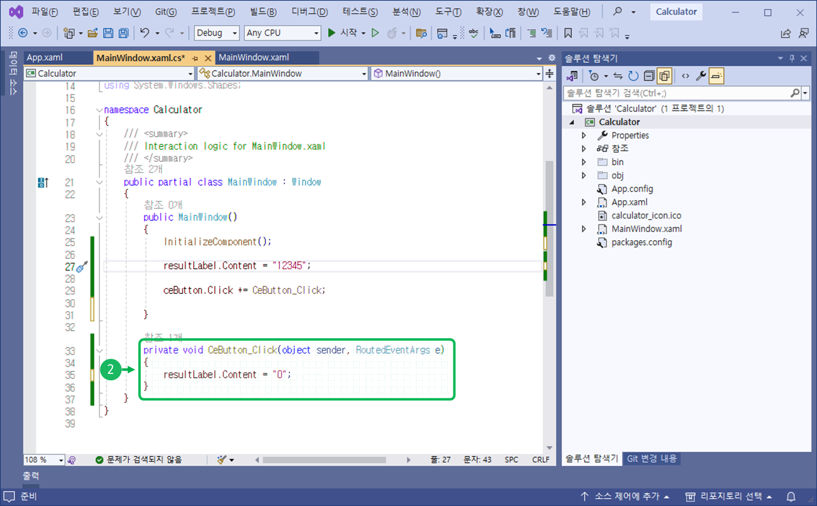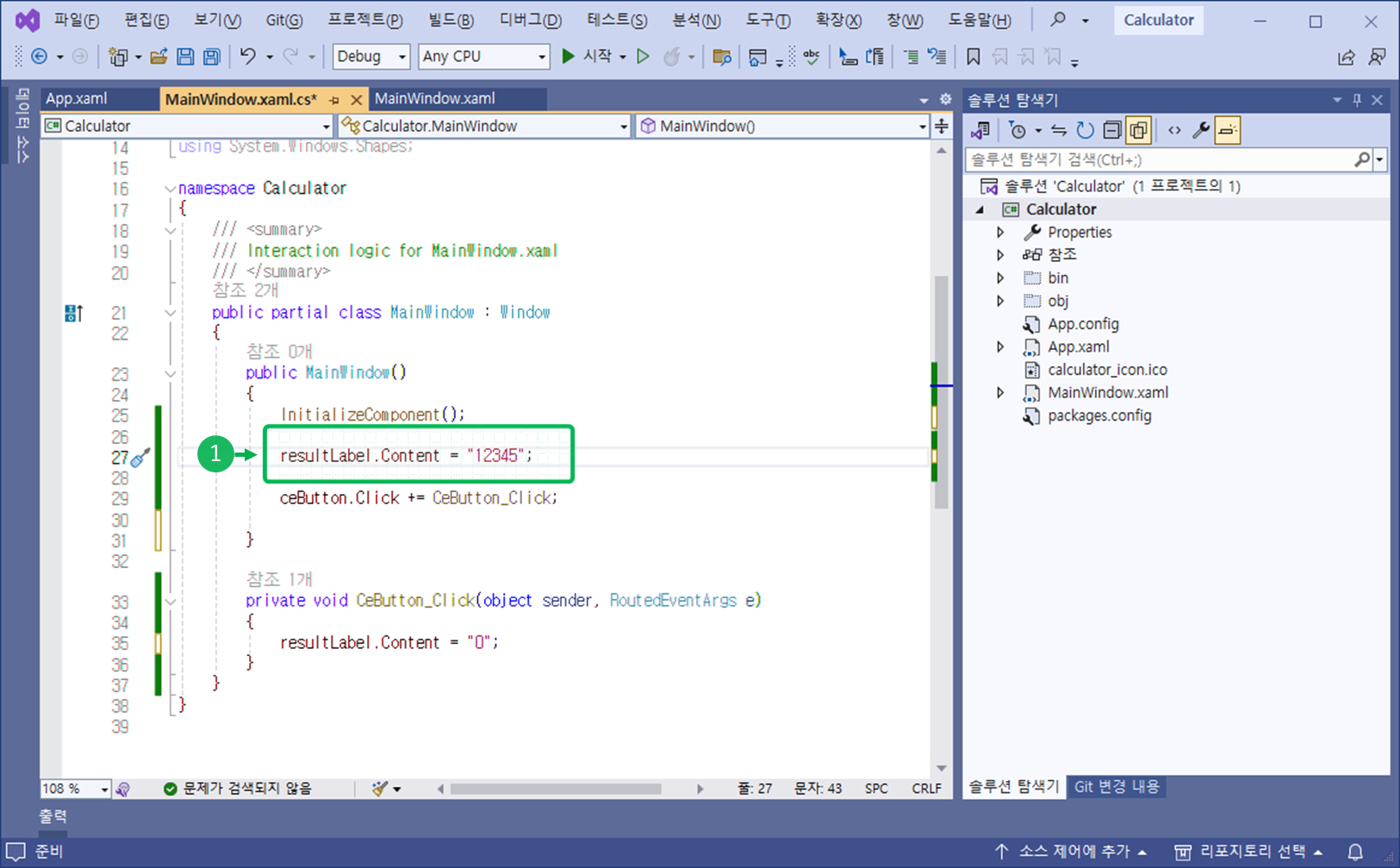 이전 포스트 작업물이 없다면, Calculator 예제를 다운받고 확인합니다.