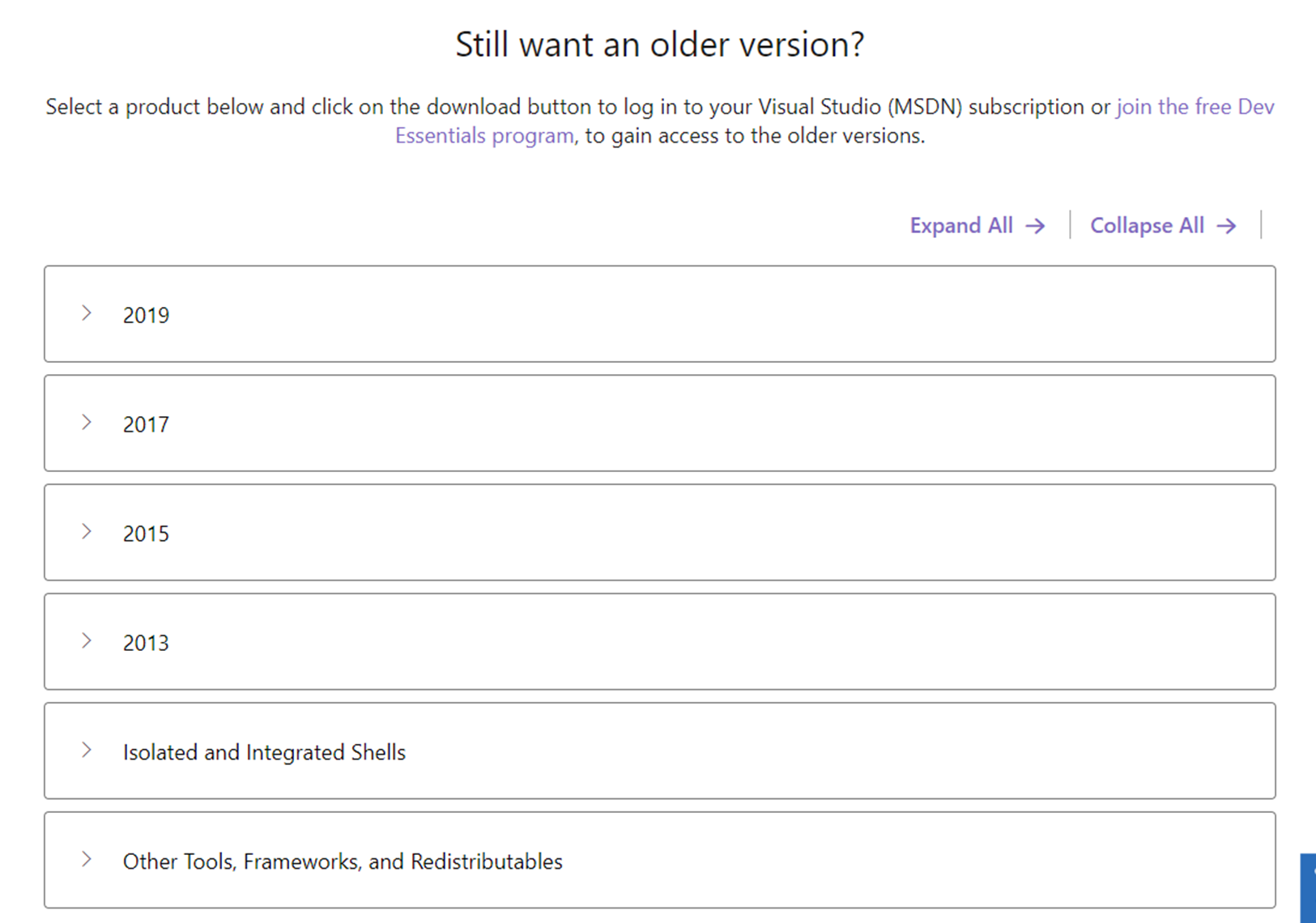 Visual Studio Older Downloads - 2019, 2017, 2015 & Previous Versions