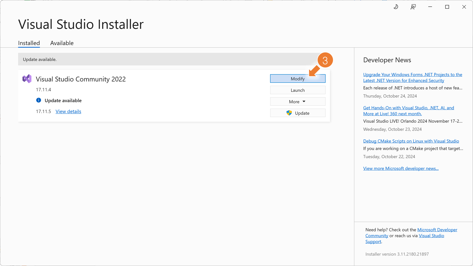 ❸ 설치된 Visual Studio 리스트를 확인 할 수 있습니다.