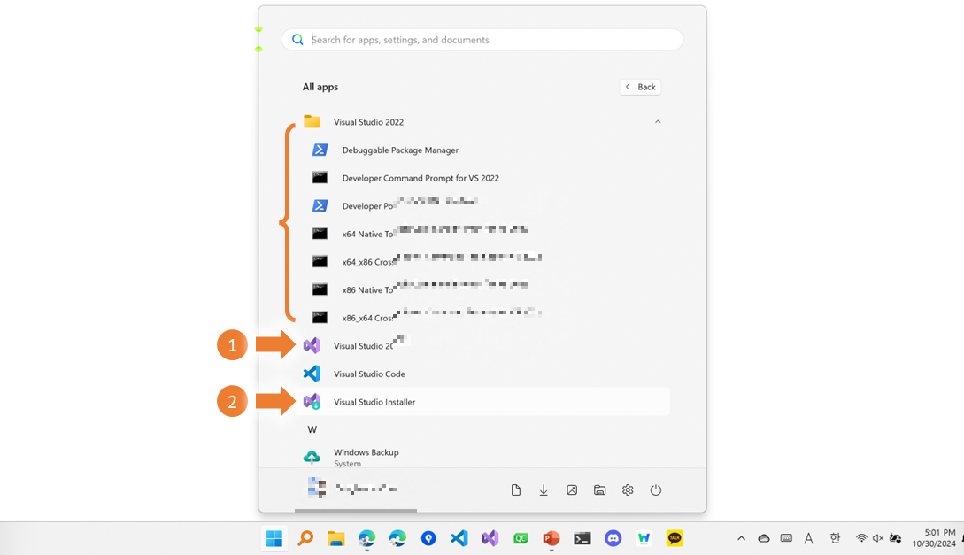 ❷ Visual StudioInstaller 를 실행하면, Visual Studio 프로그램 기능을 추가하거나 삭제할 수 있습니다.