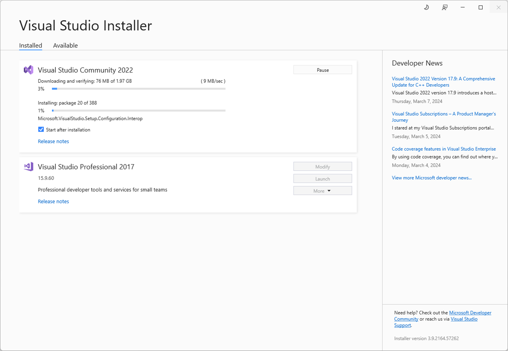 추가로 선택하거나, 이후 Visual Studio Installer를 다시 실행하여 추가 설치/제거 가능합니다.