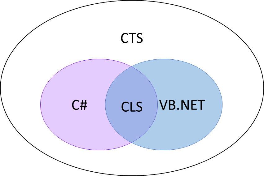 C#과 VB, 닷넷 언어는 CTS가 정의한 타입 시스템의 일부를 자신들의 프로그래밍 언어 사양에 맞게 선택적으로 구현하고 있다.