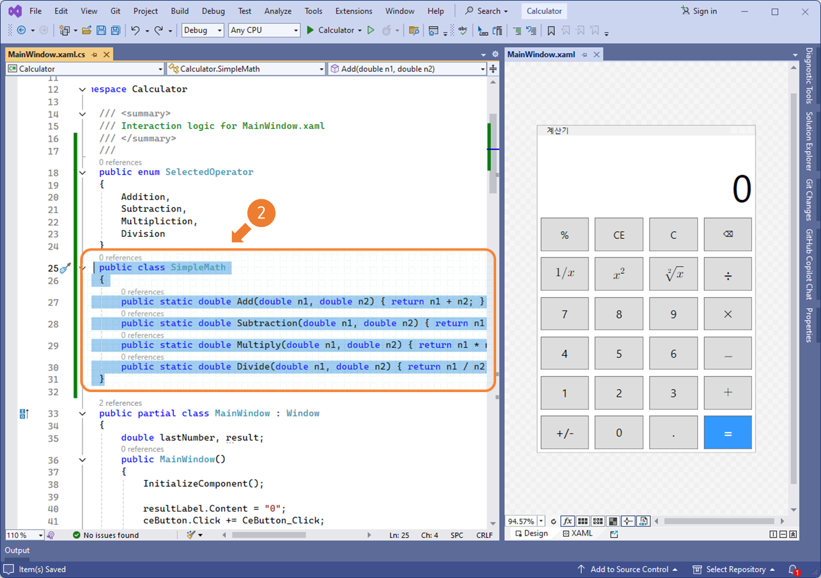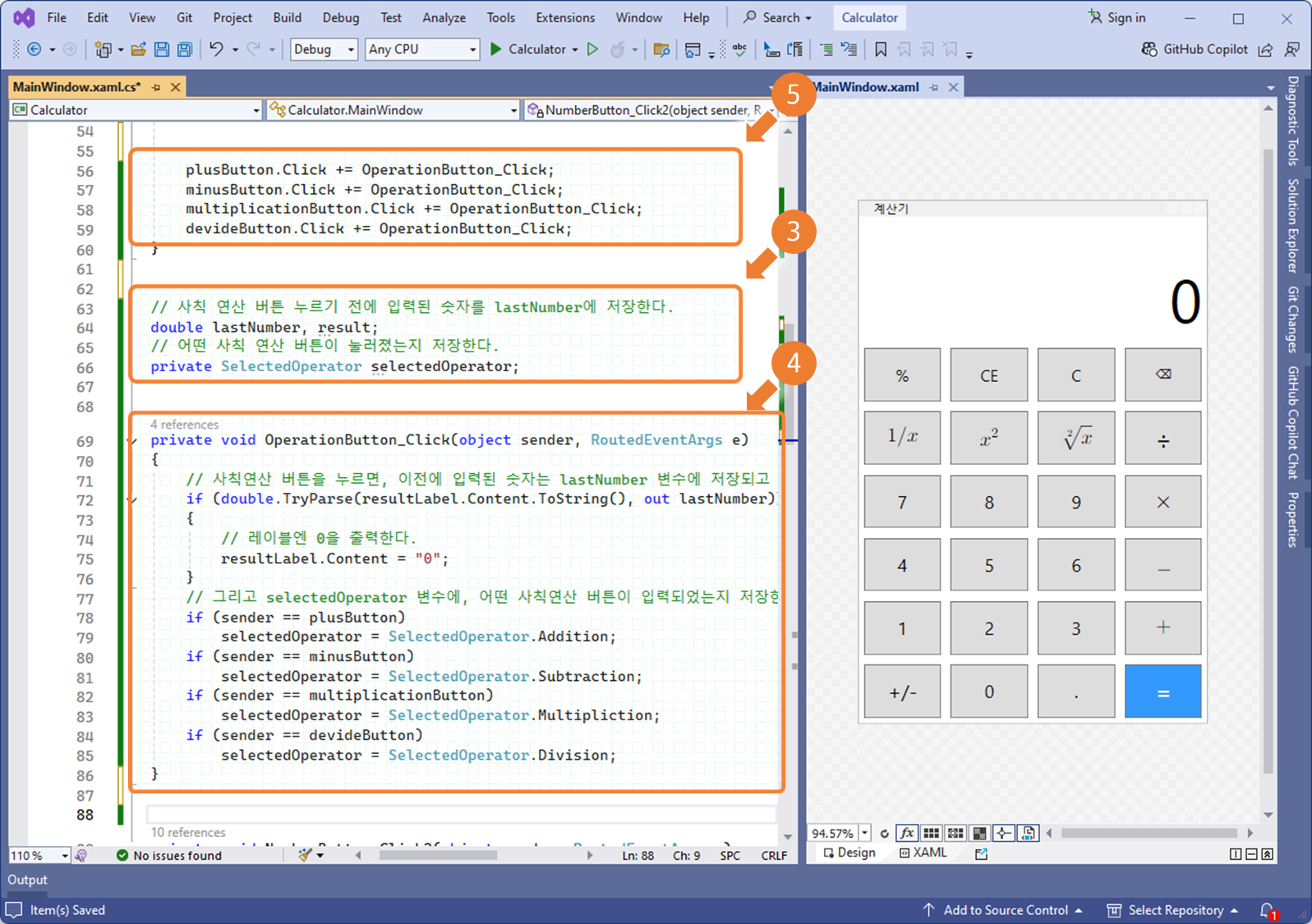 이전 포스트 작업물이 없다면, Calculator 예제를 다운받고 확인합니다.