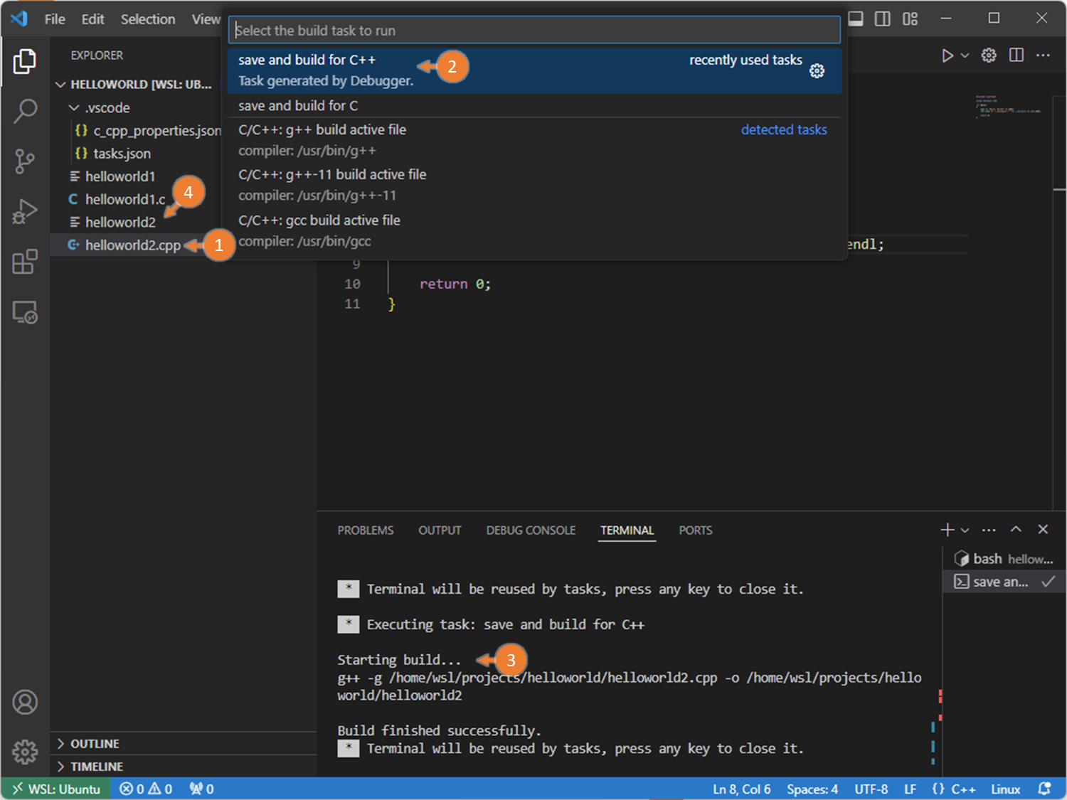 ② Step 6. 에서 작업한 Task.json 파일 설정 중, save and build for C++ 을 선택합니다.