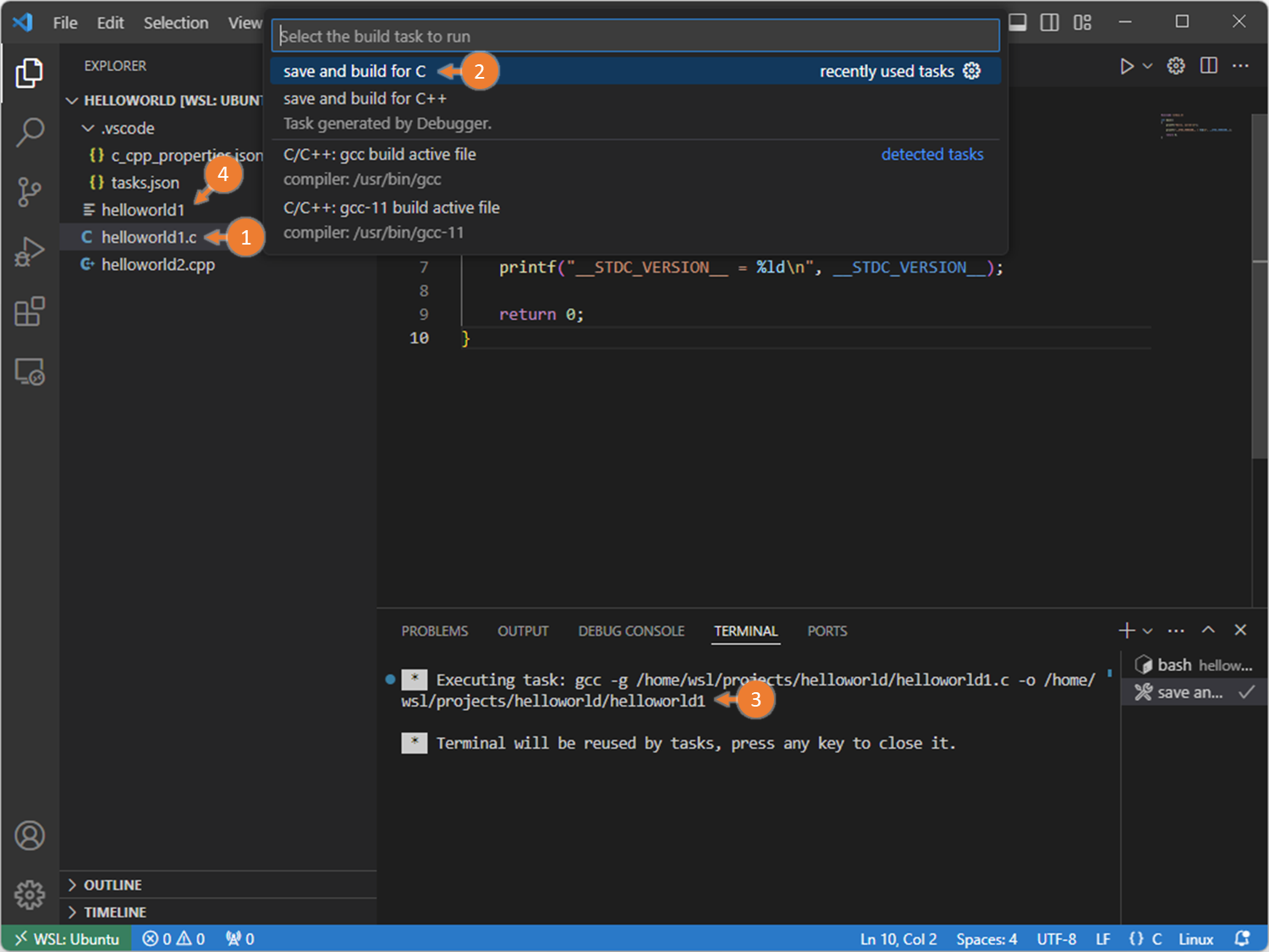 ② Step 6. 에서 작업한 Task.json 파일 설정 중, save and build for C 를 선택합니다.