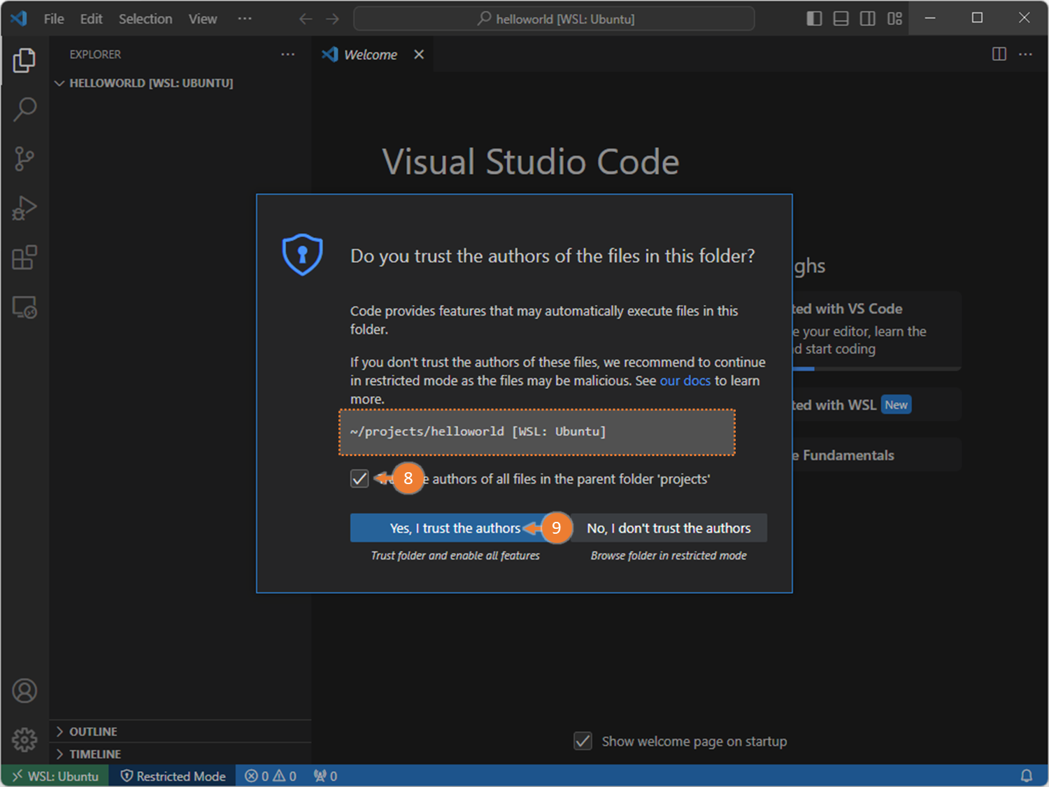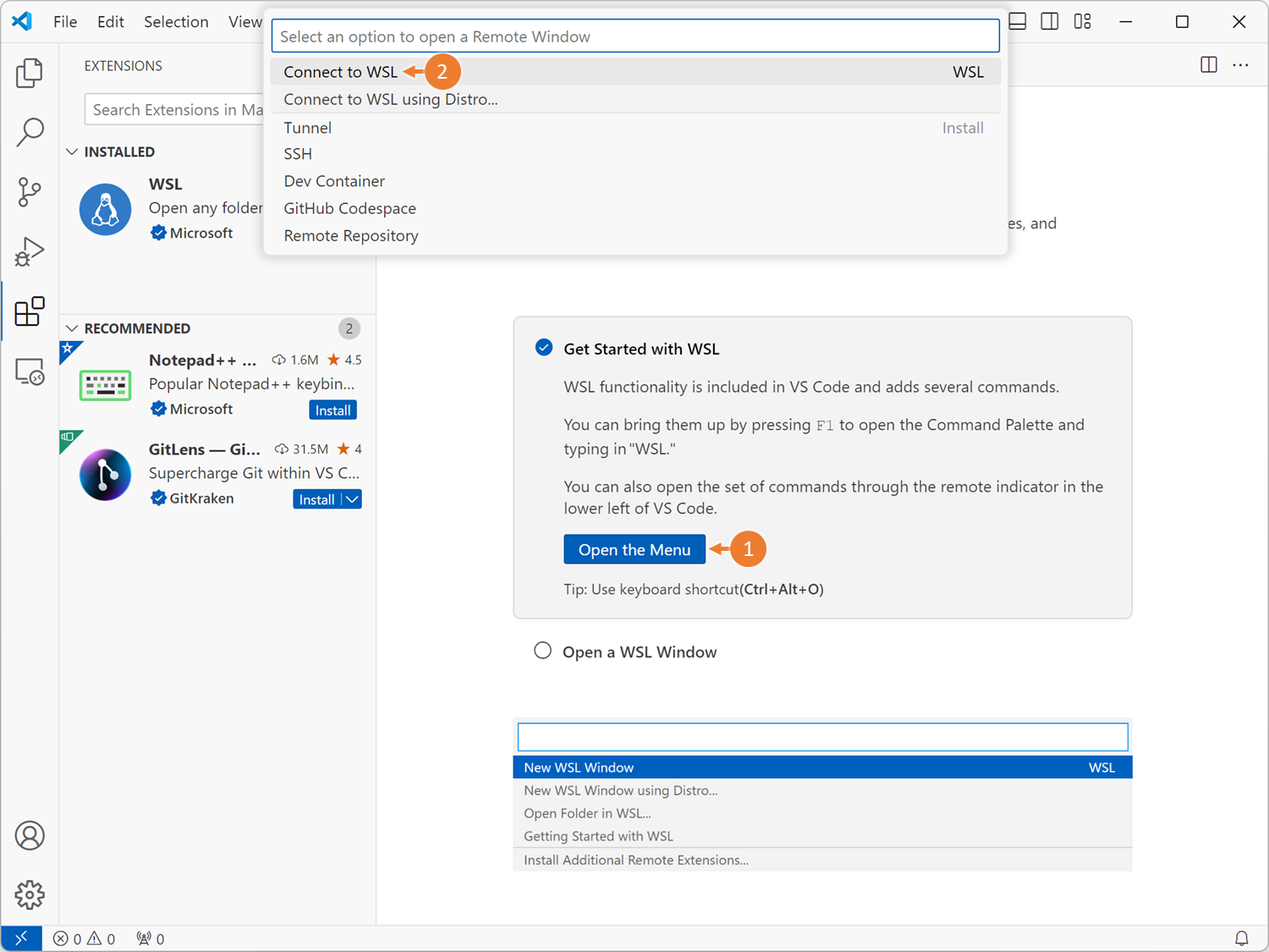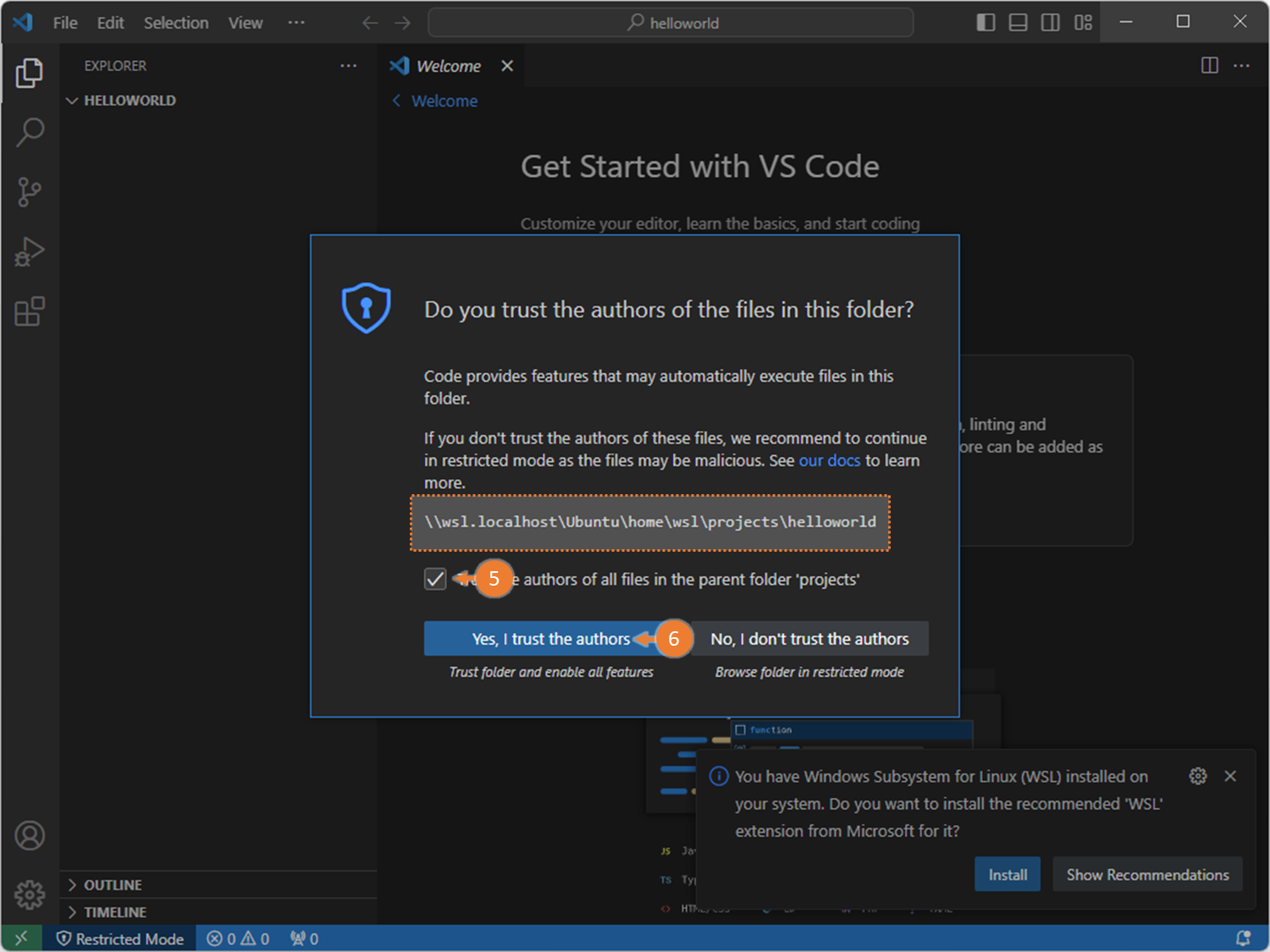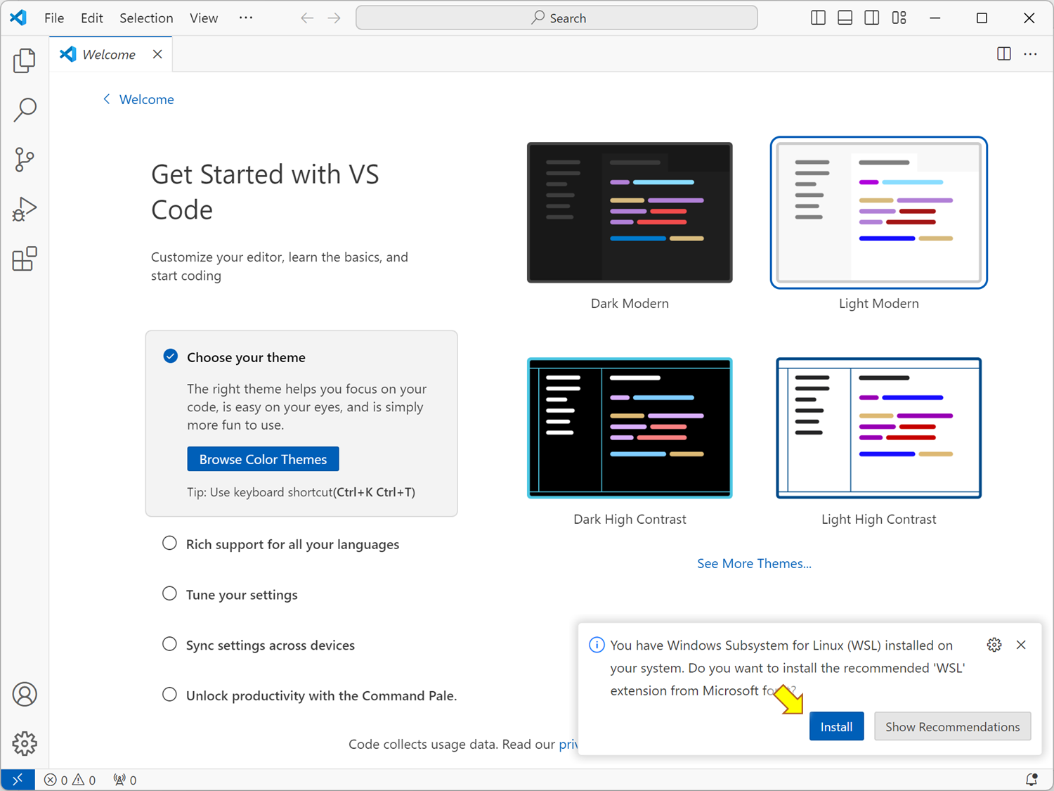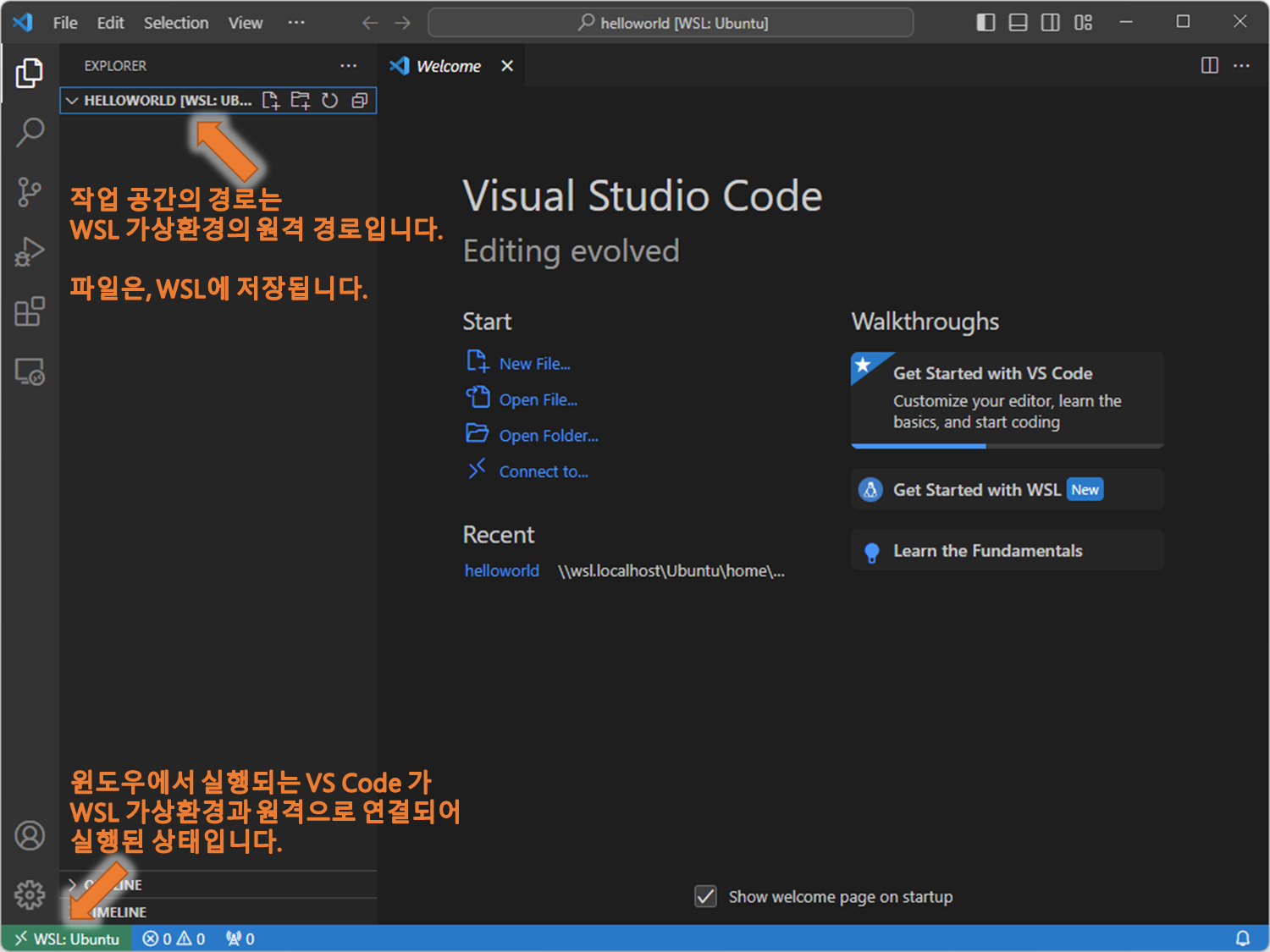 VS Code 를 실행시, 아래 이미지처럼 우측 하단에 WSL Extention 설치 안내가 자동으로 팝업됩니다.