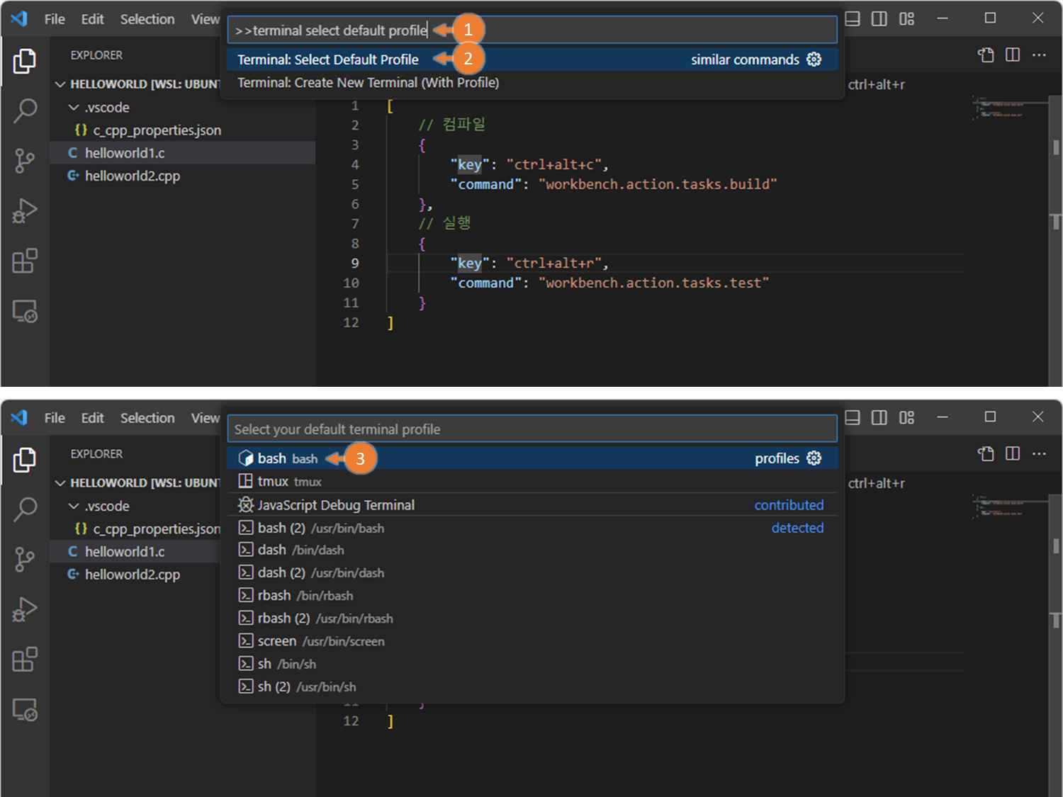 "type": "shell", // 터미널 유형: process, shell, cppbuild
