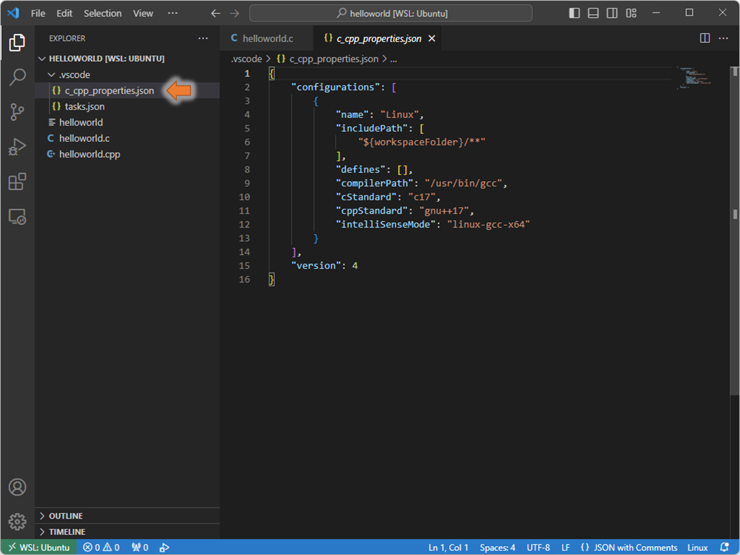 ④ .vscode 폴더의 c_cpp_properties.json 파일에서 확인 할 수 있습니다.