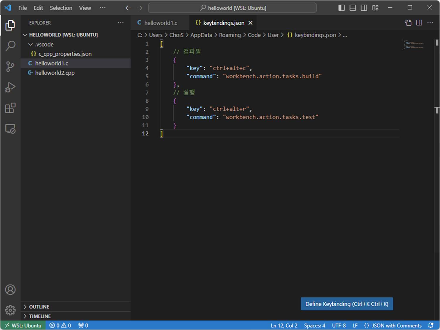// 빌드 기본 단축키 : ctrl+shift+b (동일 기능이지만 한손 누르기 힘듦)