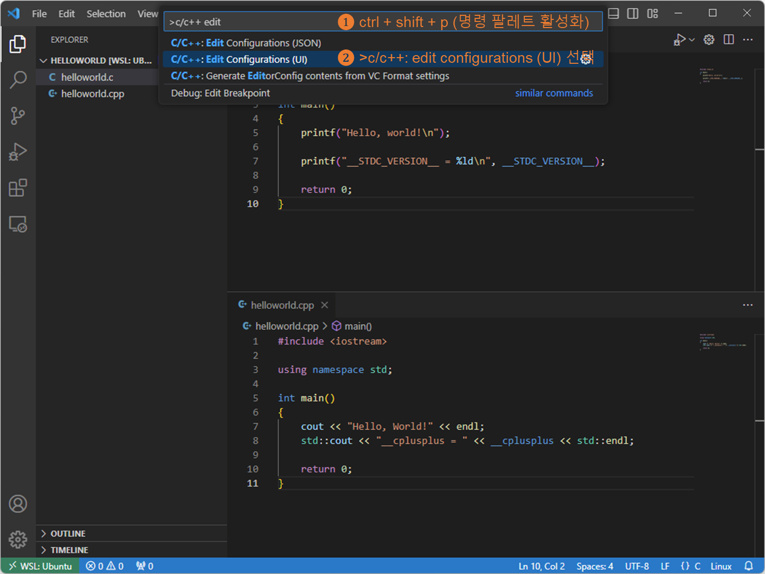 ② 아래 키워드로 검색하여 < C/C++: 구성 편집(UI) > 을 찾아 선택합니다.