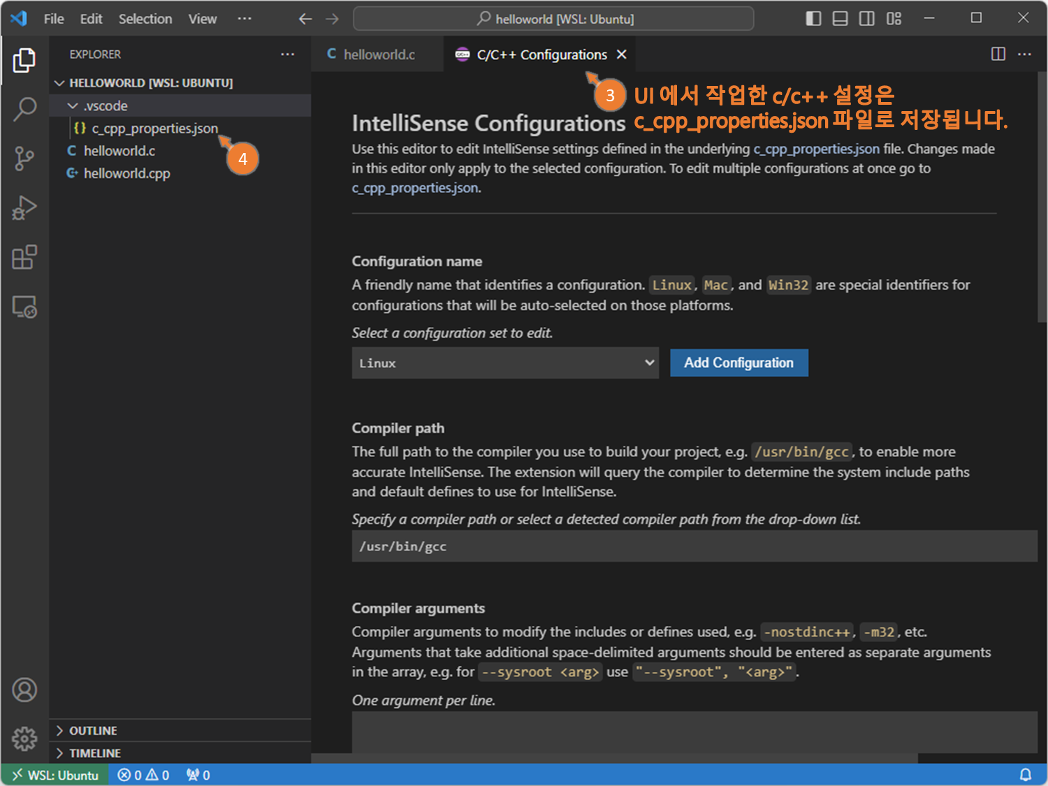 C/C++: 구성 편집(UI) 를 사용해 JSON 설정 파일을 생성합니다.