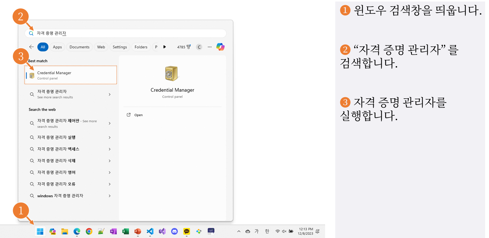 - Windows "자격 증명 관리자" 에 GitHub 계정 정보 등록