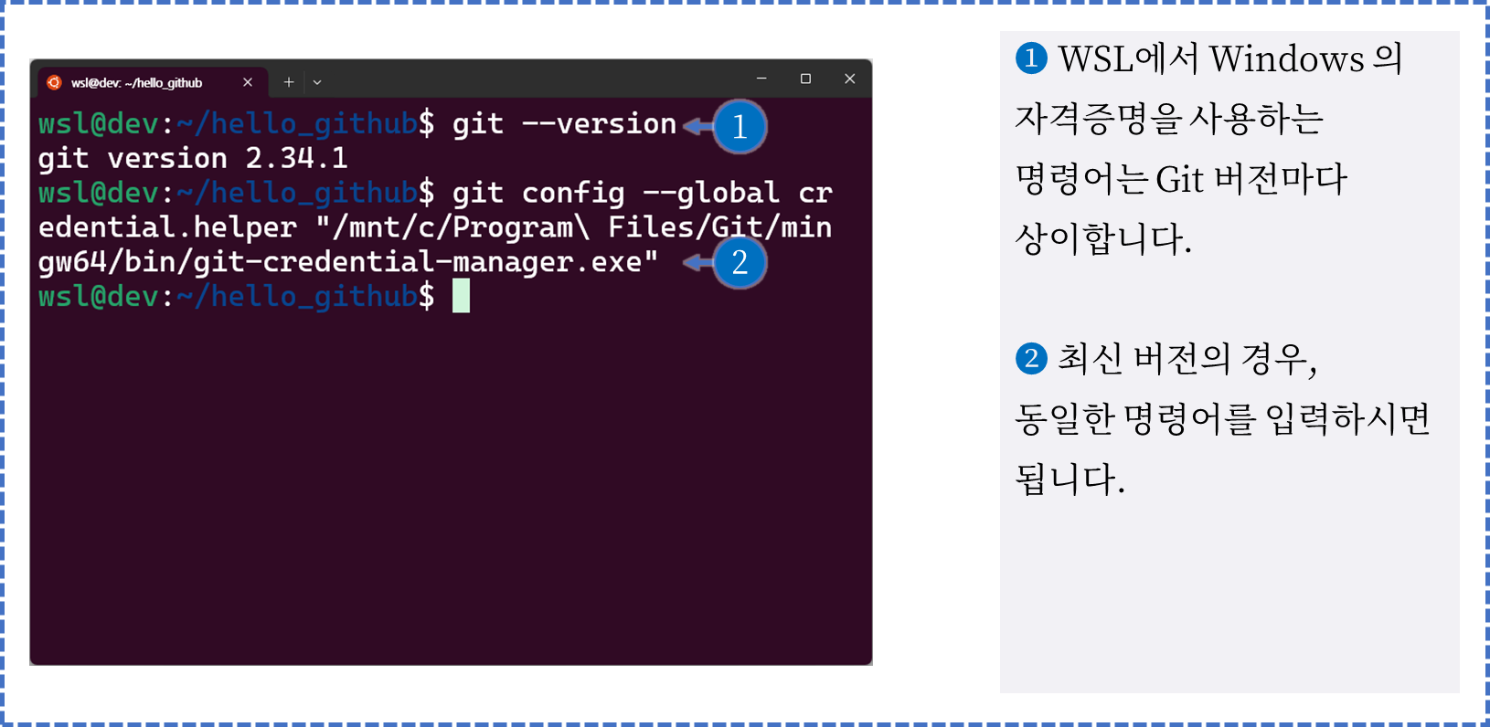 WSL 과 Windows 자격 증명 연동하기 (설치된 GIT 버전 >= v2.39.0인 경우)