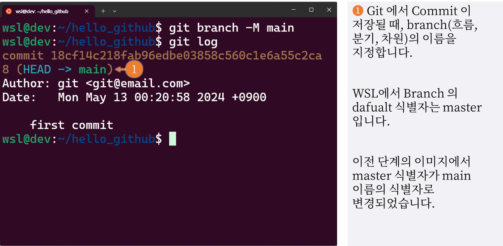 Git 에서 Commit 이 저장될 때, branch(흐름, 분기, 차원)의 이름을 지정합니다.