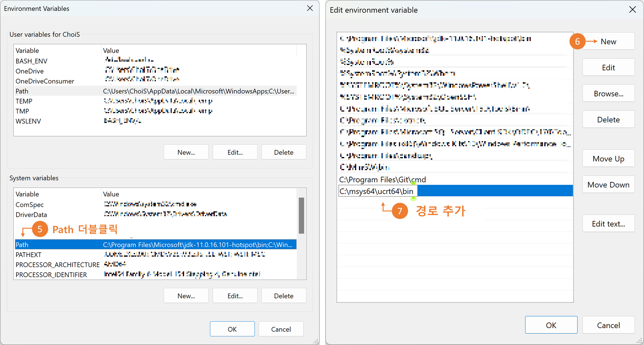 7.3 시스템 환경 변수 Path에 ucrt64 binary 경로 추가