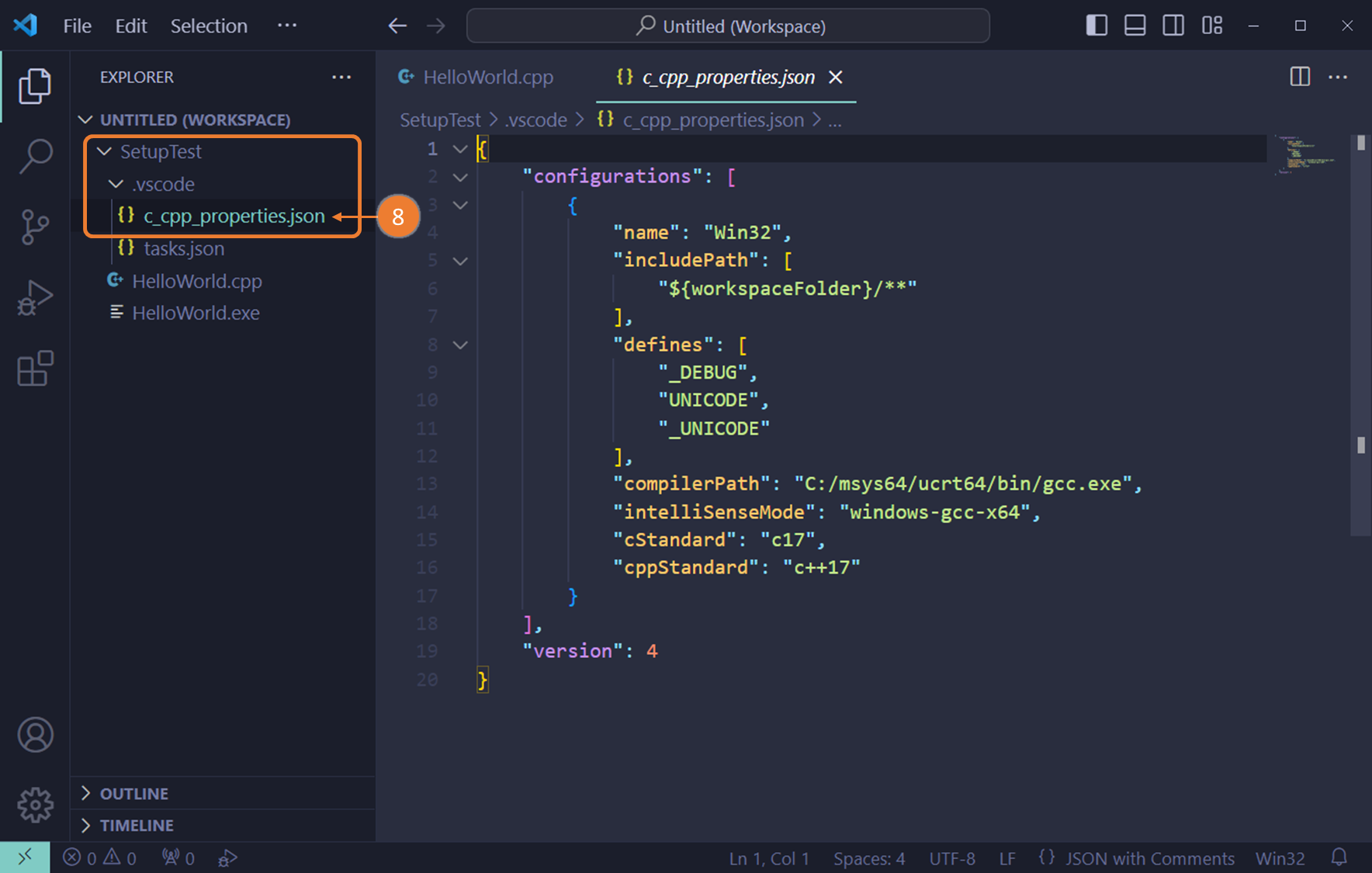 C/C++: 구성 편집(UI) 를 사용해 JSON 파일을 생성합니다.